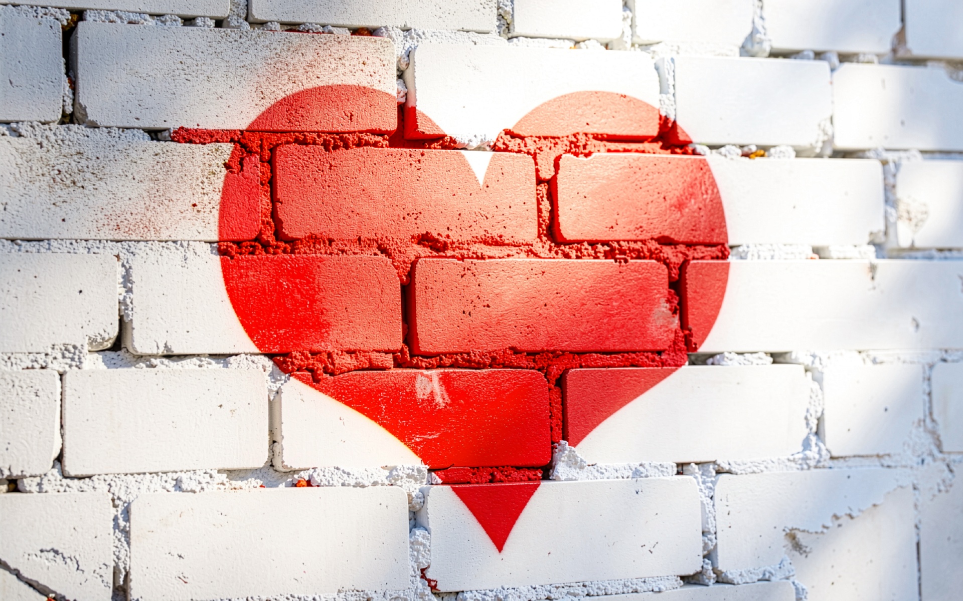 Красное сердце на белой кирпичной стене