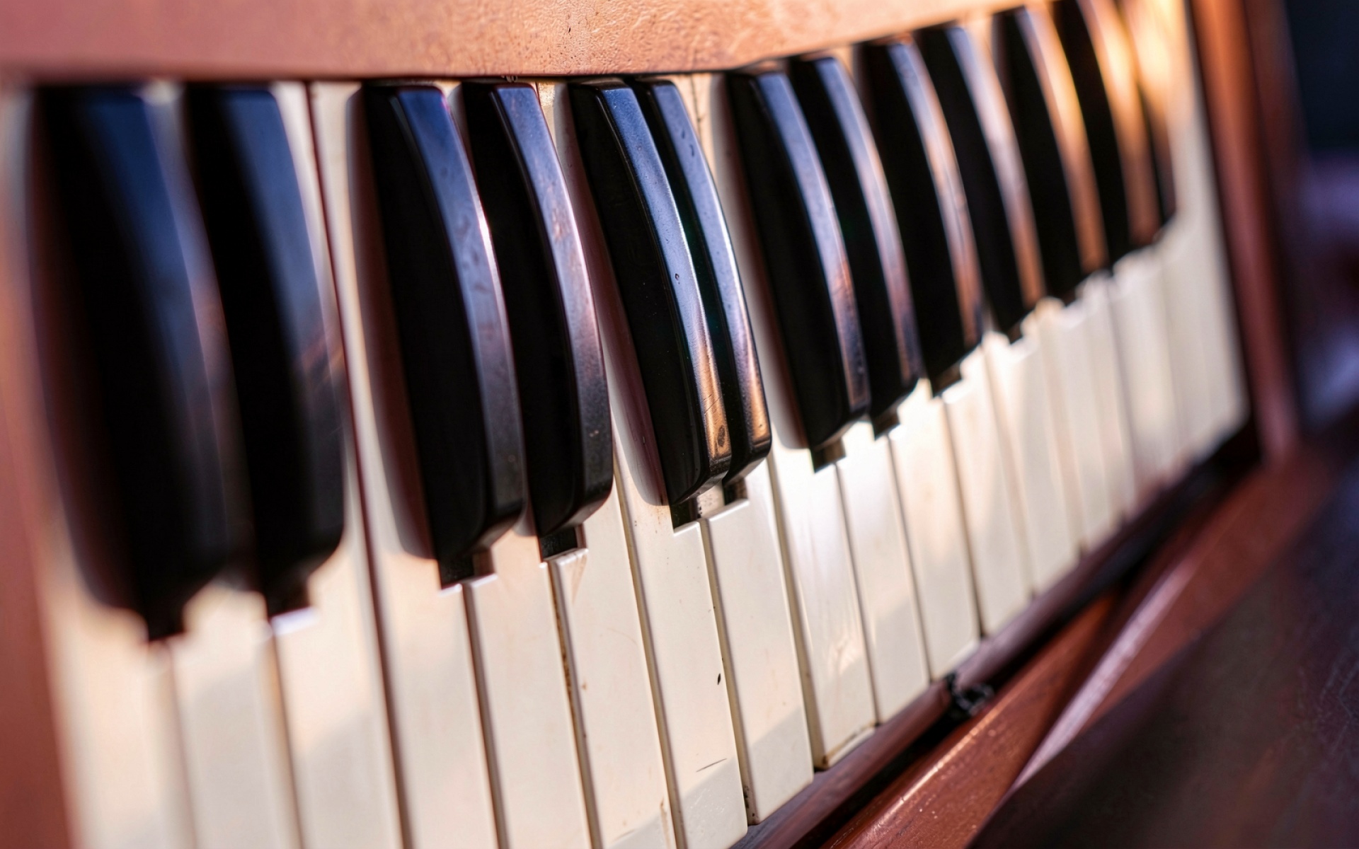 Клавиши старого пианино в теплом свете