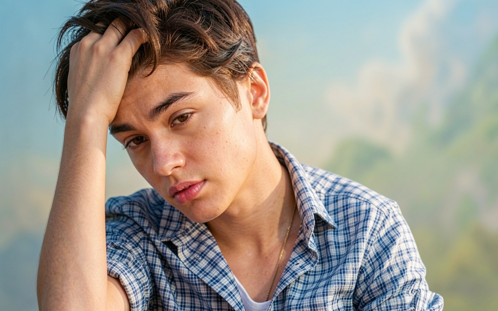 Портрет молодого человека в синей клетчатой рубашке