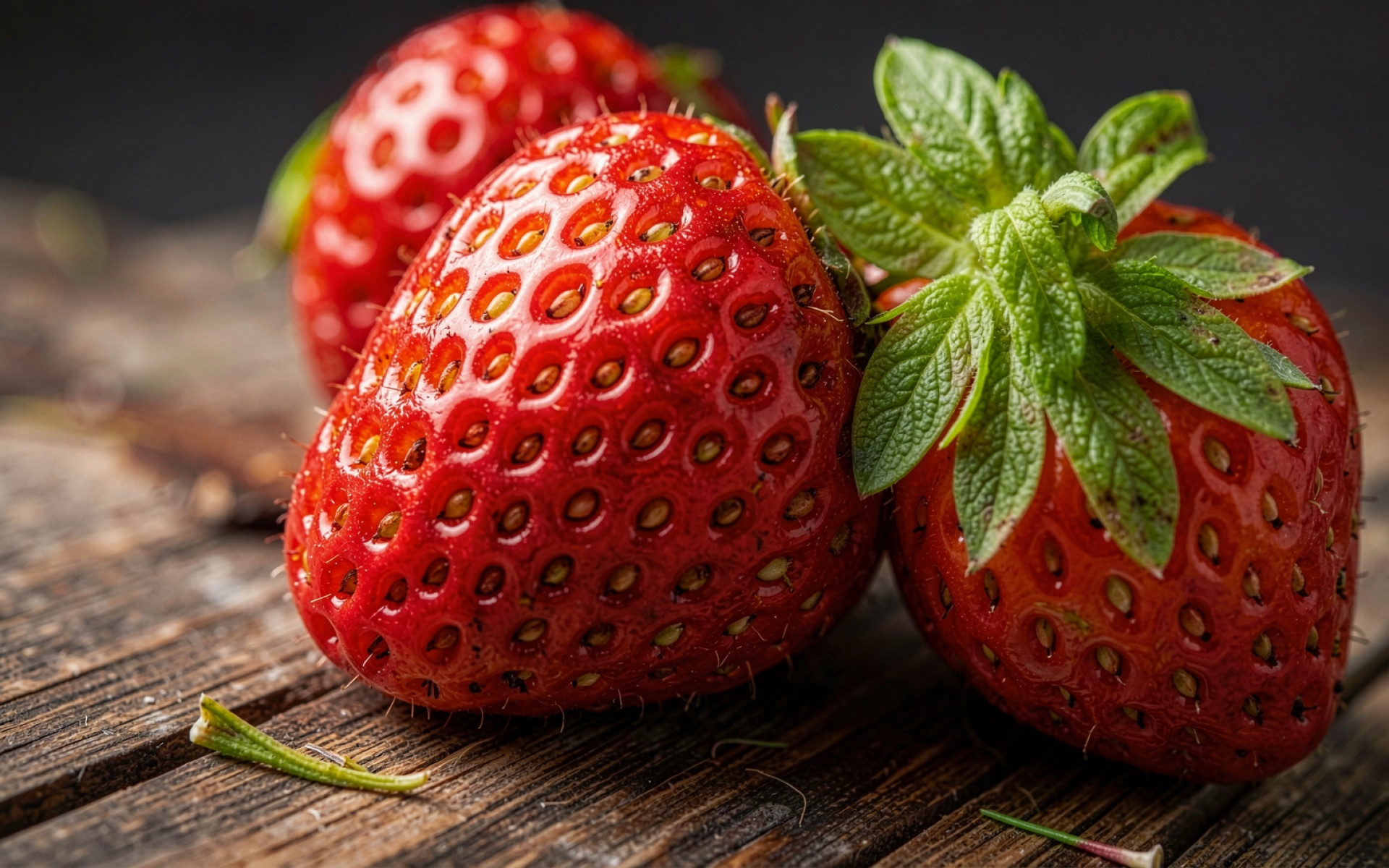Клубника красная макросъемка темный деревянный фон