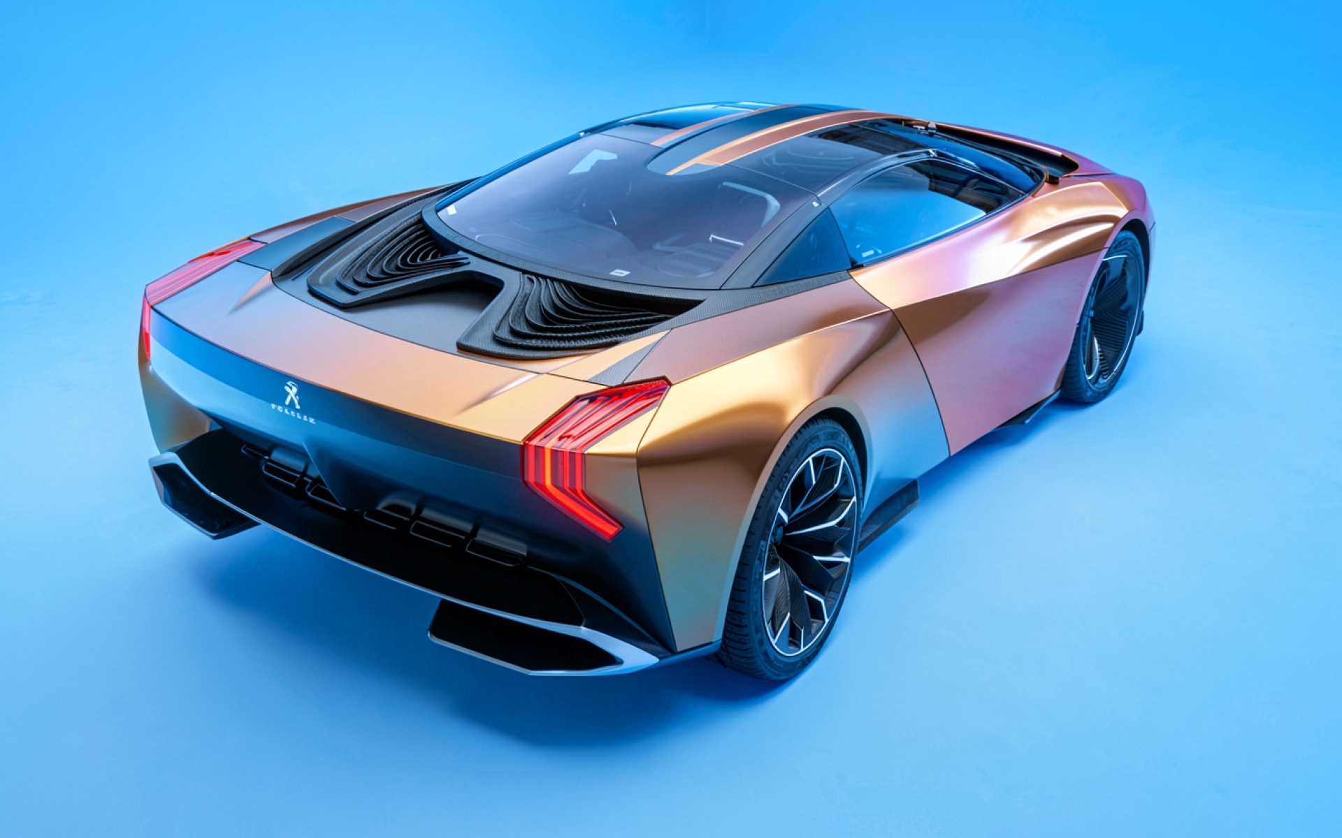 Концепт-кар Peugeot в золотистых тонах на синем фоне