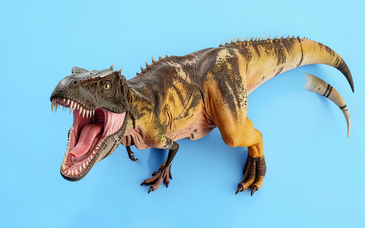 Тираннозавр рекс желто коричневый на голубом фоне