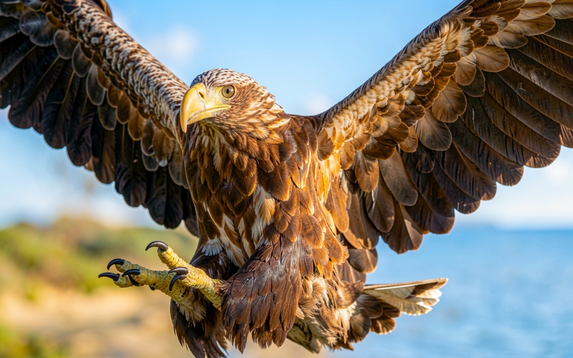 Коричневый орел в полете на фоне неба