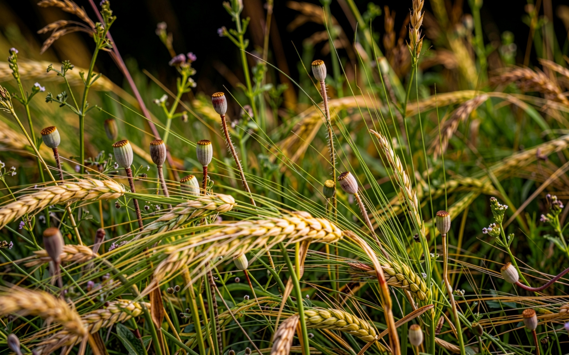 Золотые колосья пшеницы и коробочки мака