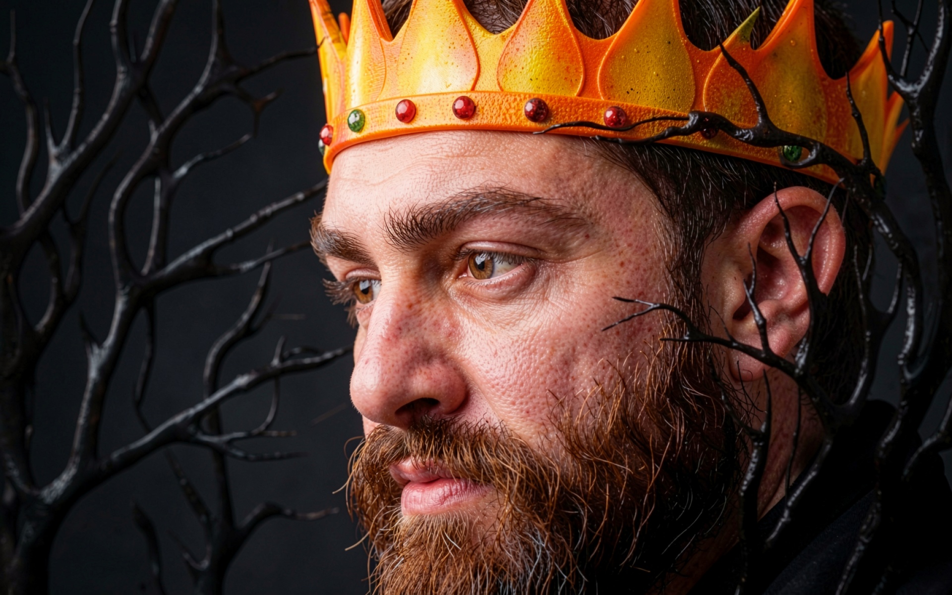 Король в желтой короне среди черных ветвей