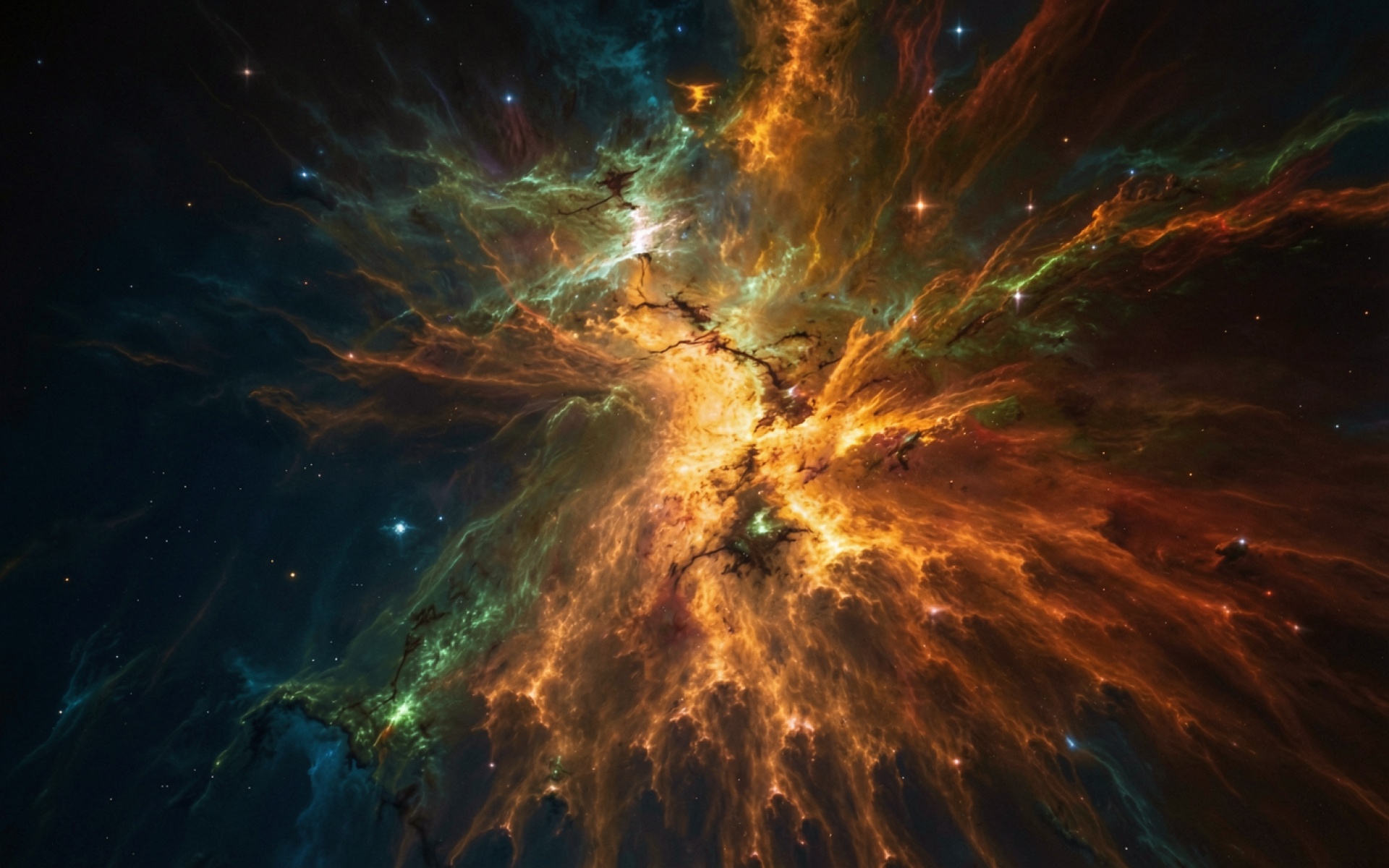 Космическая туманность золотого и синего цвета