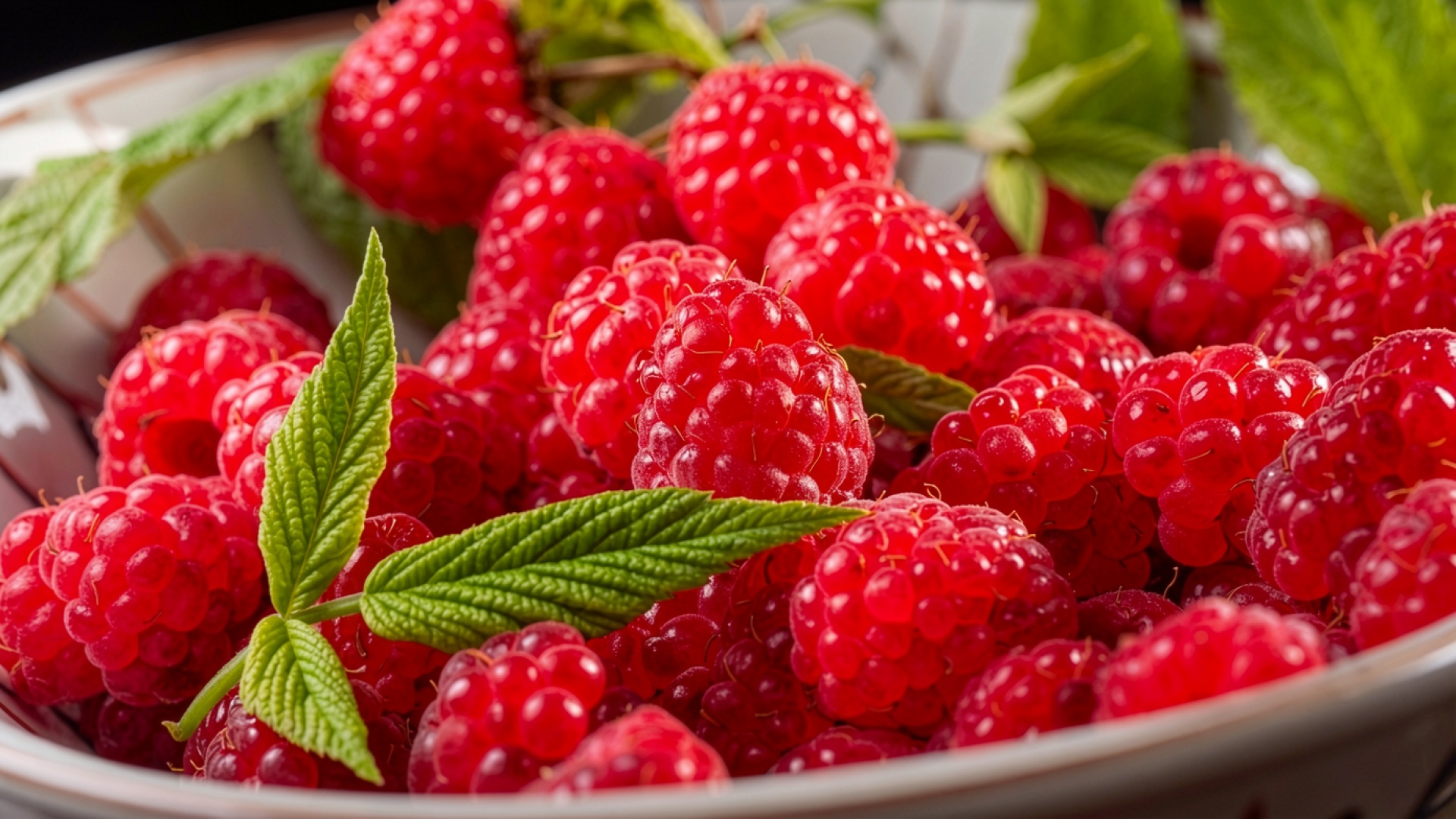 Спелая красная малина в белой плетеной корзине