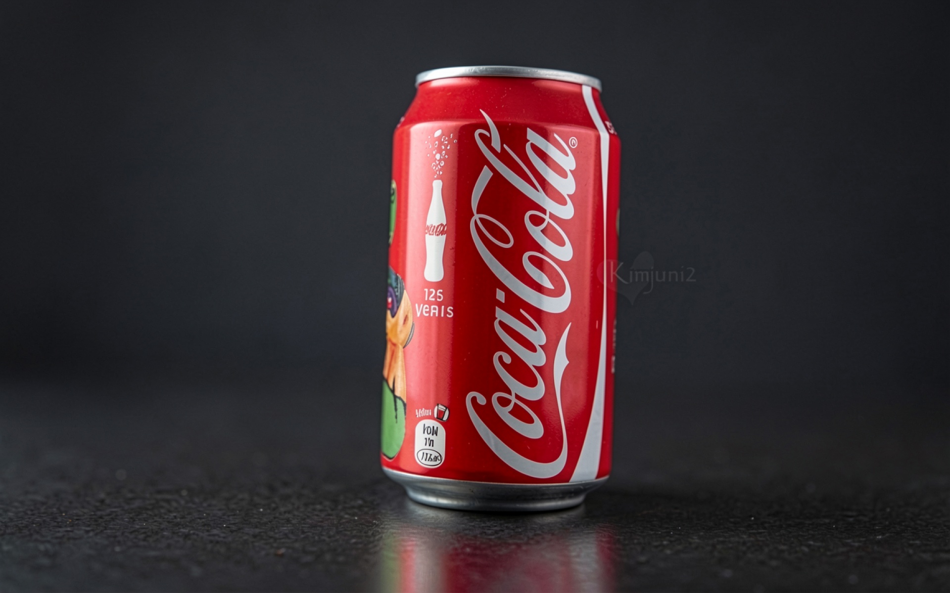 Красная банка Coca-Cola на темном фоне