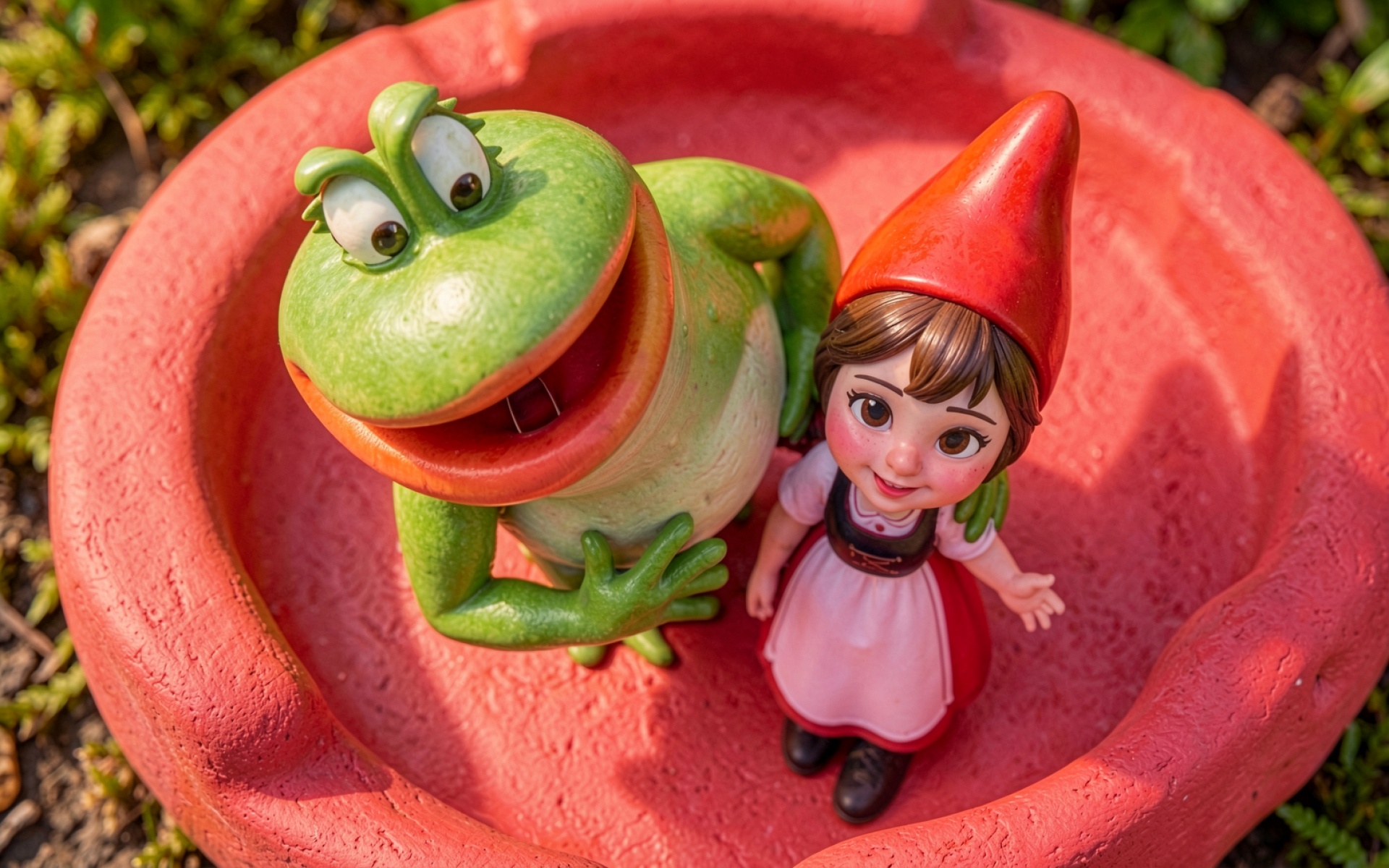 Фигурки лягушки и девочки в красном горшке