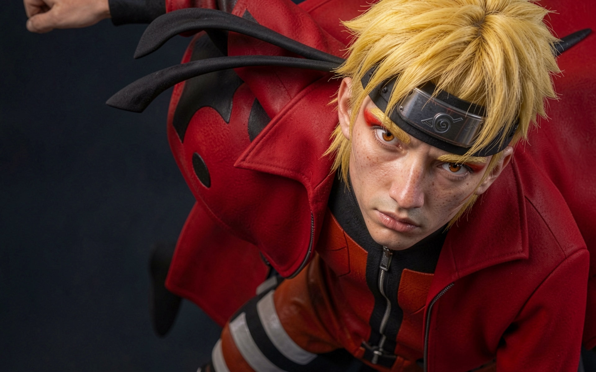 Косплей Наруто в красном плаще темный фон