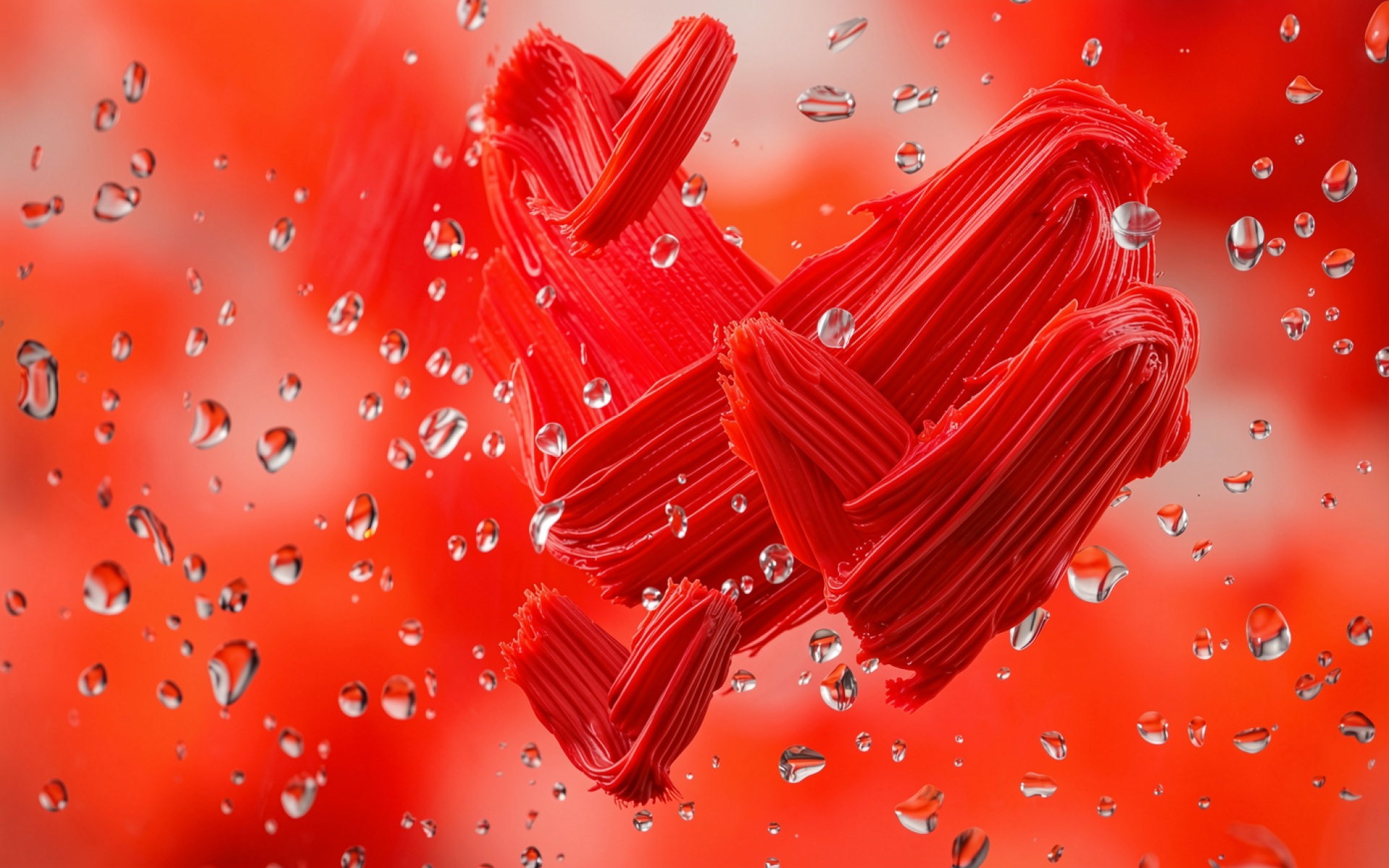 Красные мазки краски с каплями воды