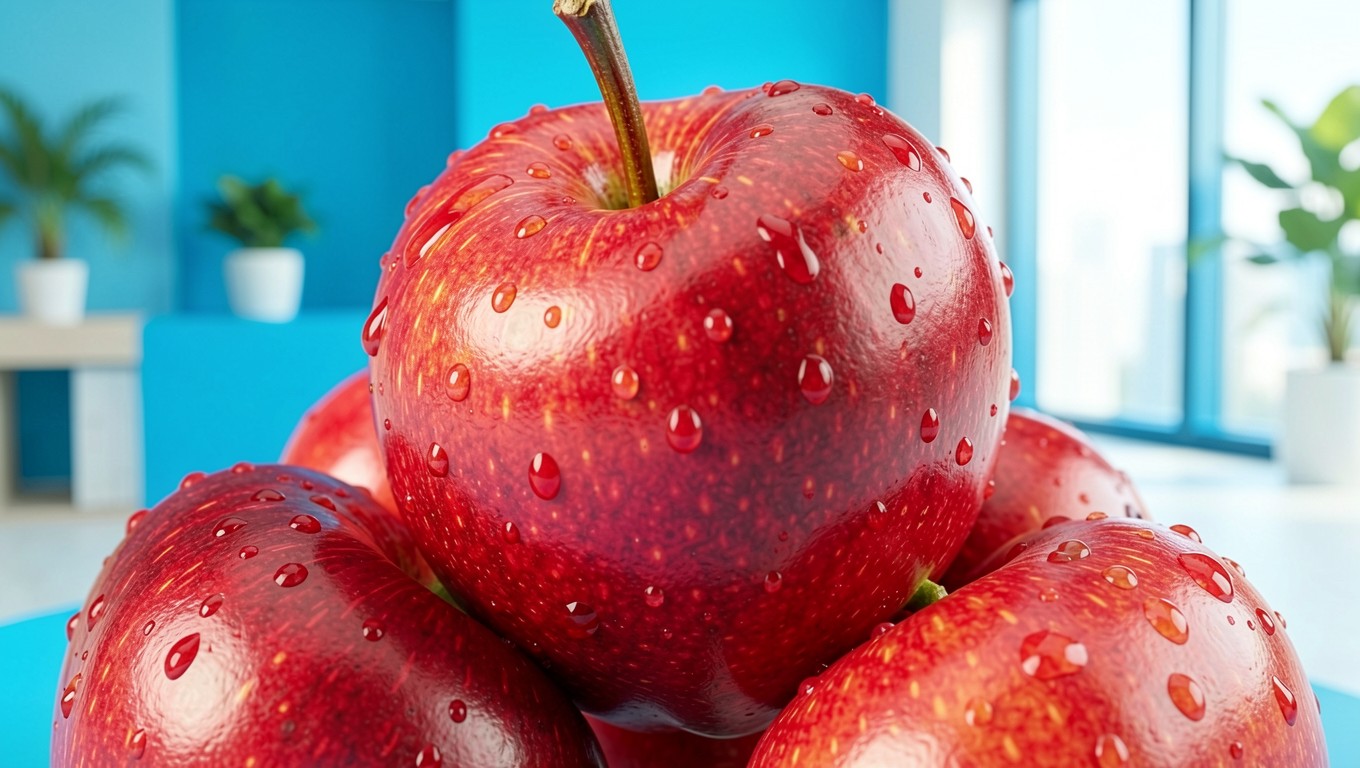 Красные яблоки с каплями воды в интерьере