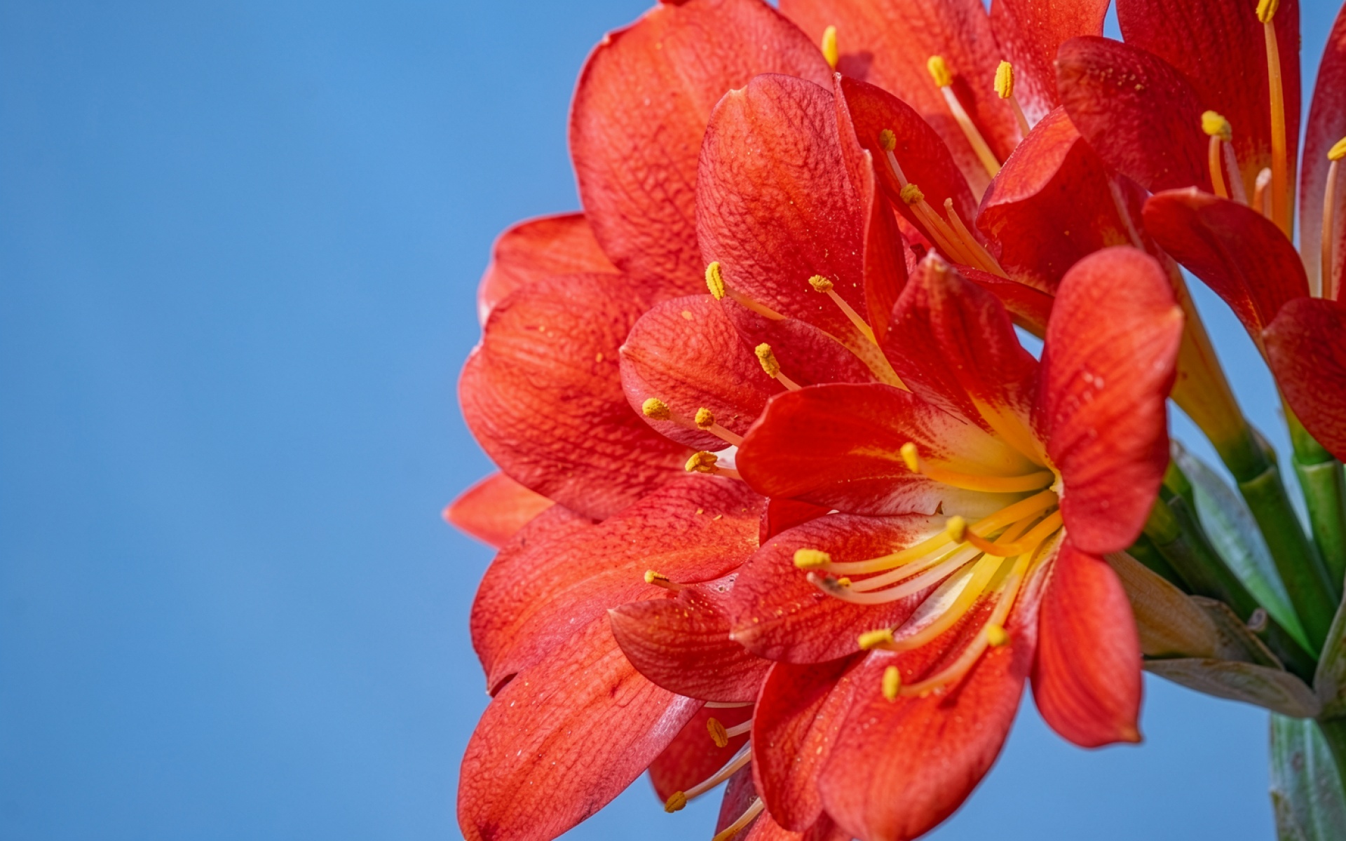 Красный цветок клаivia на голубом фоне