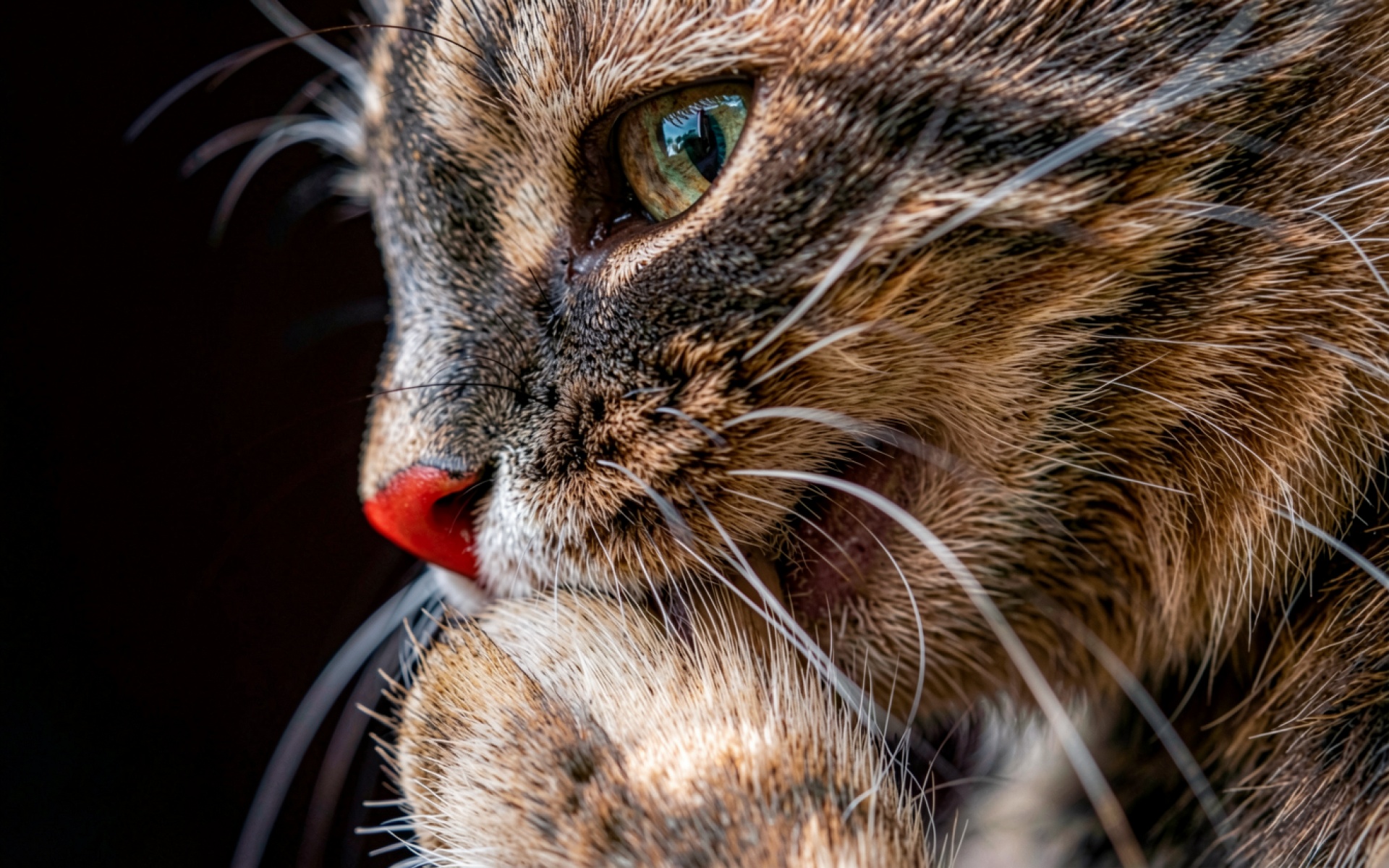 Рыжий полосатый кот с красным носом