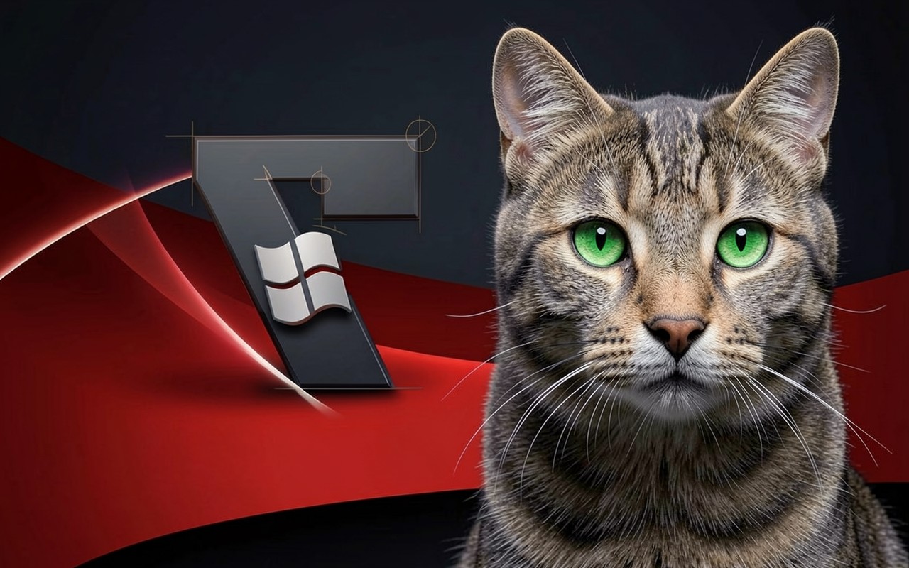 Полосатый кот на фоне красных абстрактных линий