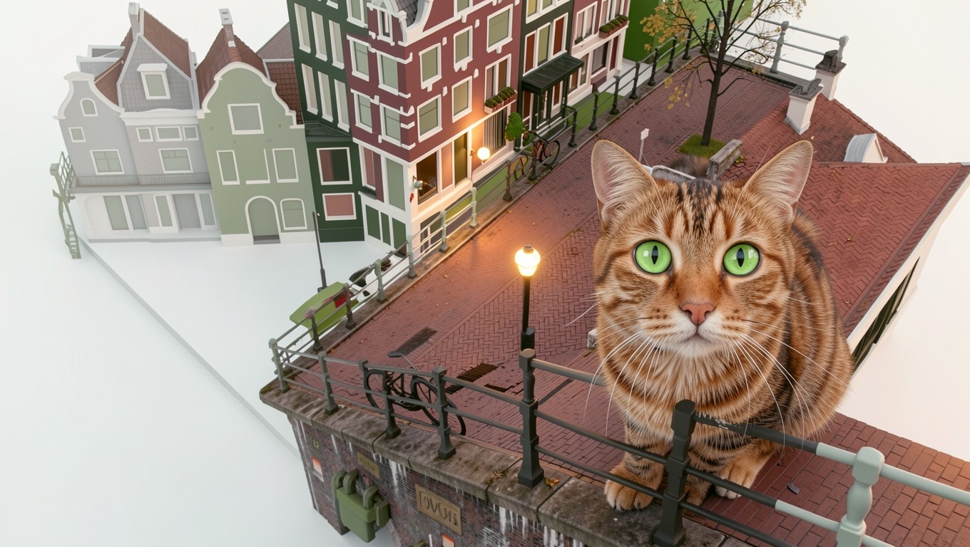 Рыжий полосатый кот на крыше Амстердама