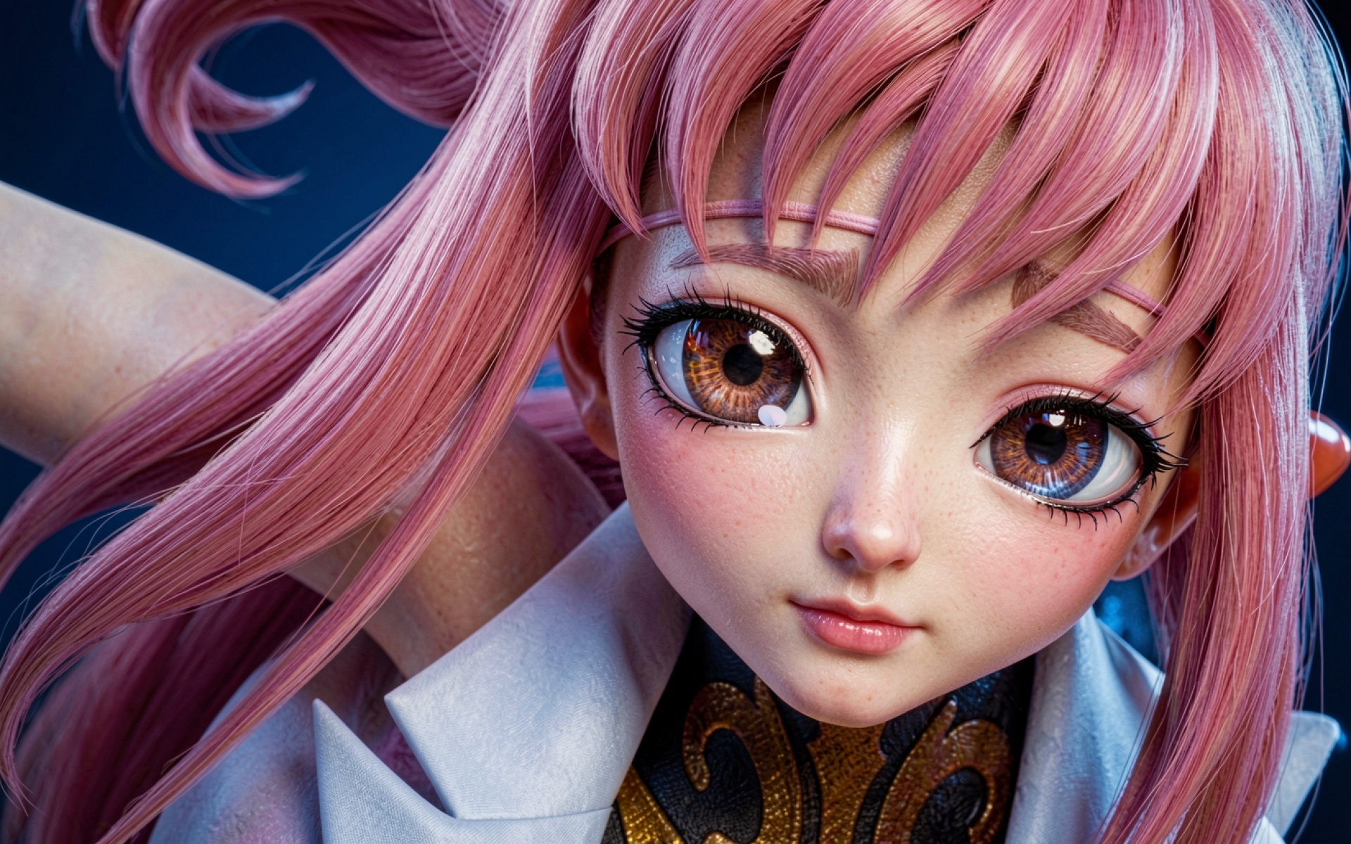 Кукла с розовыми волосами в белом костюме