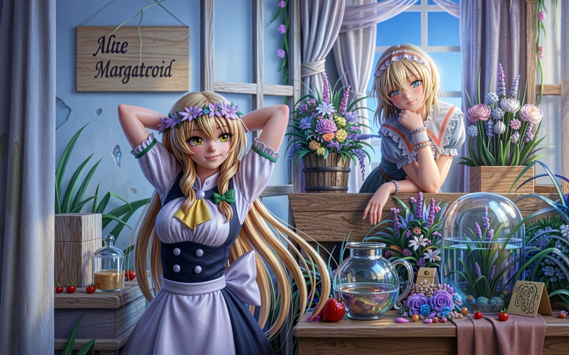 Алуэ Маргатроид в цветочном интерьере кухни