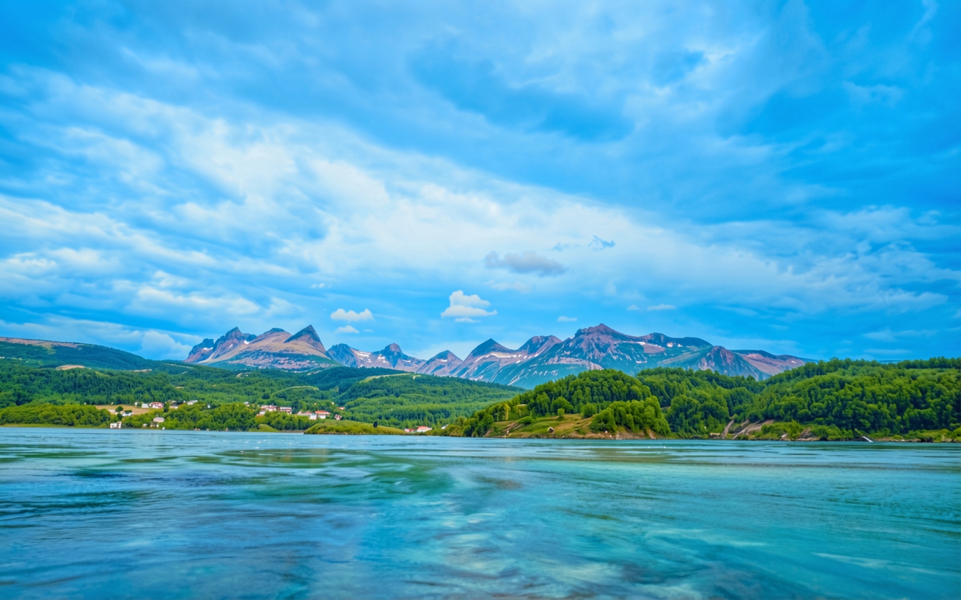 Горы с зелеными лесами и бирюзовой водой