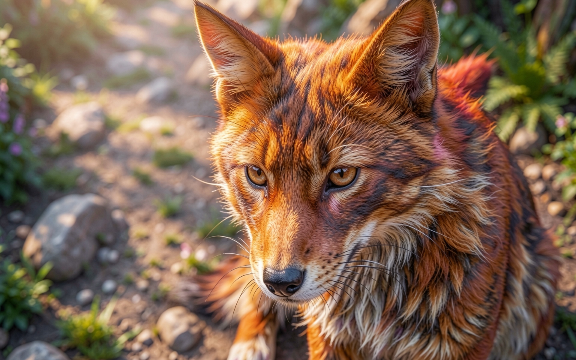Рыжая лиса в солнечном лесном пейзаже