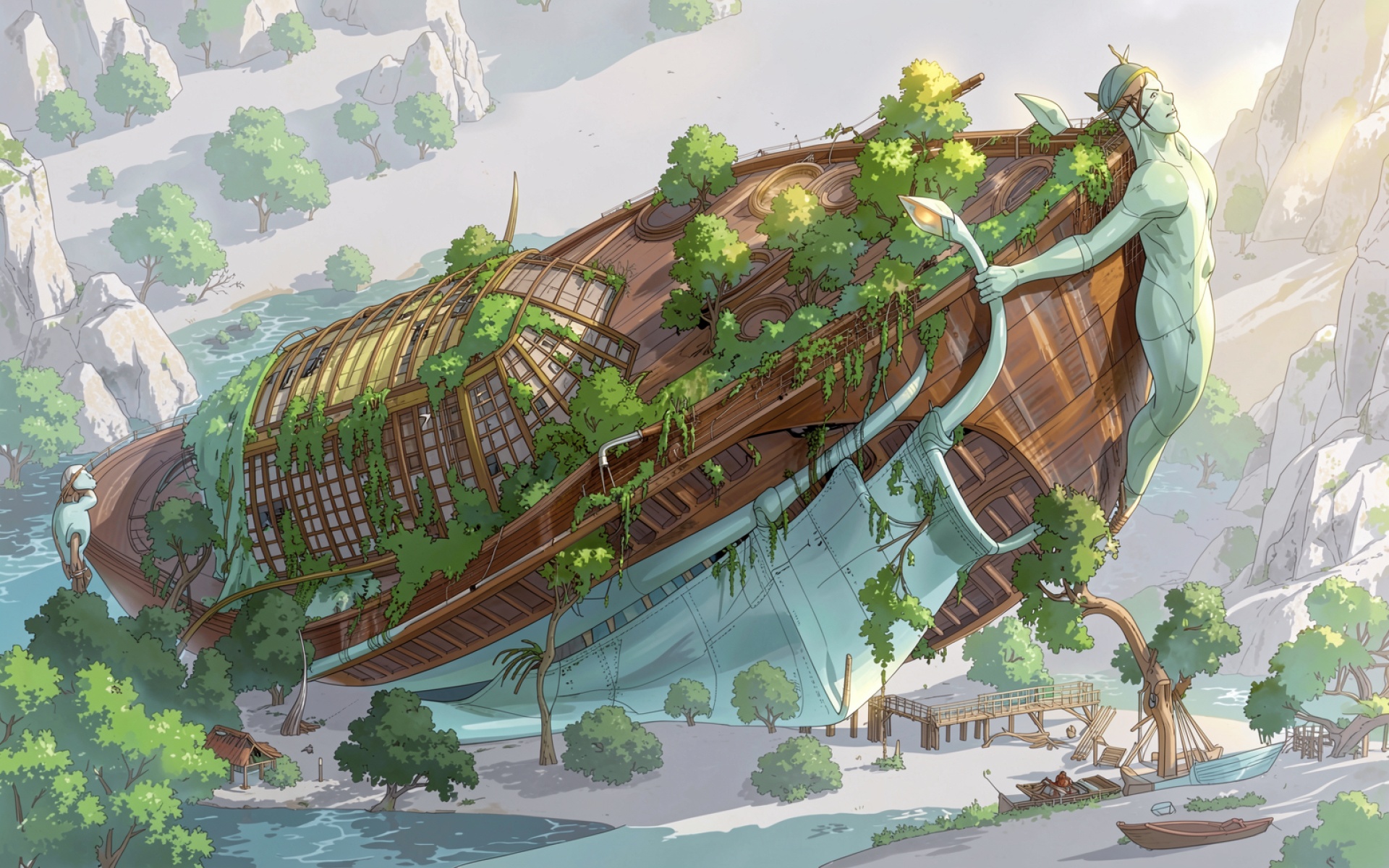 Заброшенный корабль в тропическом лесу с гигантами