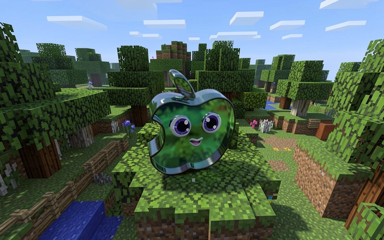 Стеклянное яблоко с лицом в лесу Minecraft