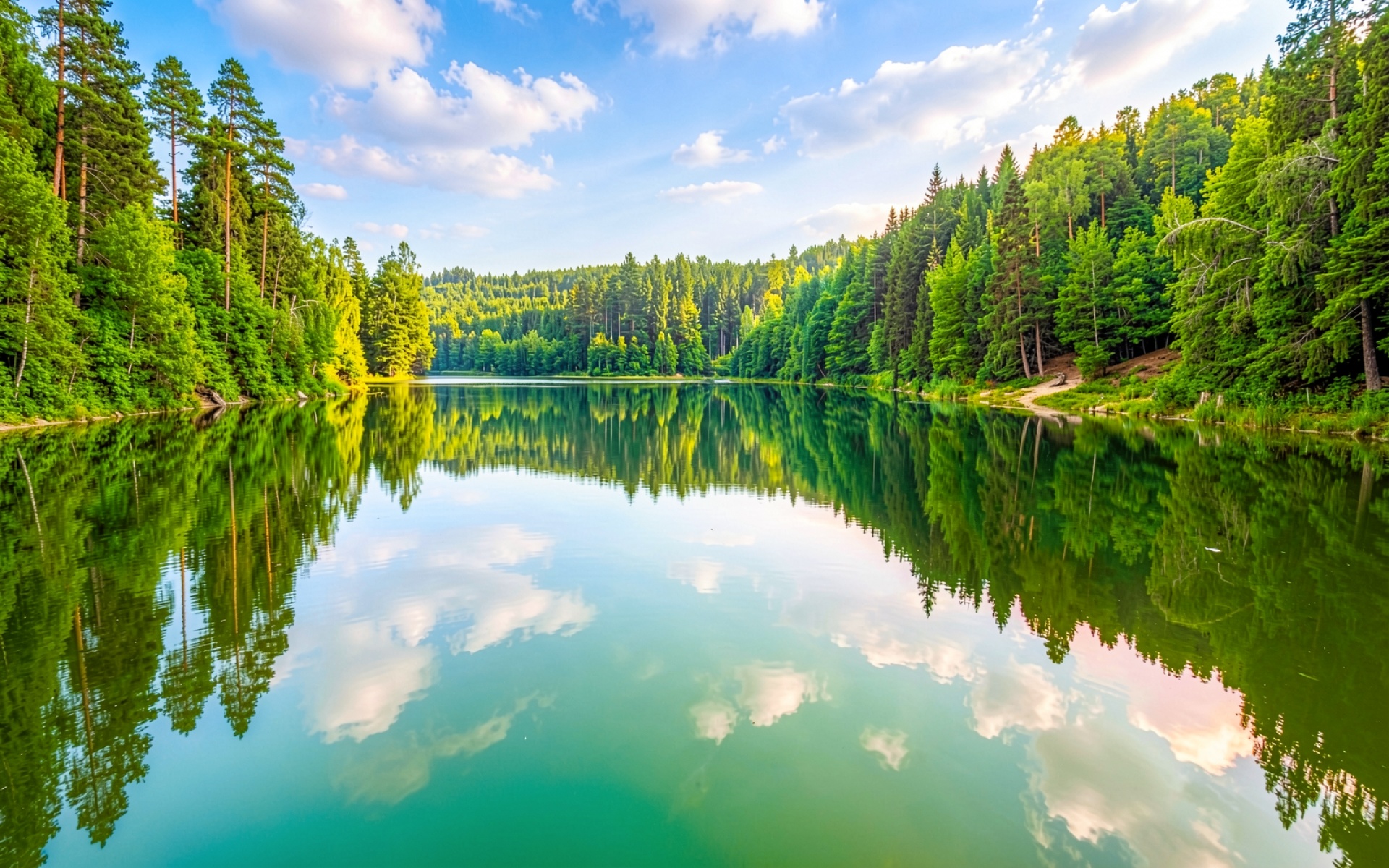 Горное озеро хвойный лес летний пейзаж