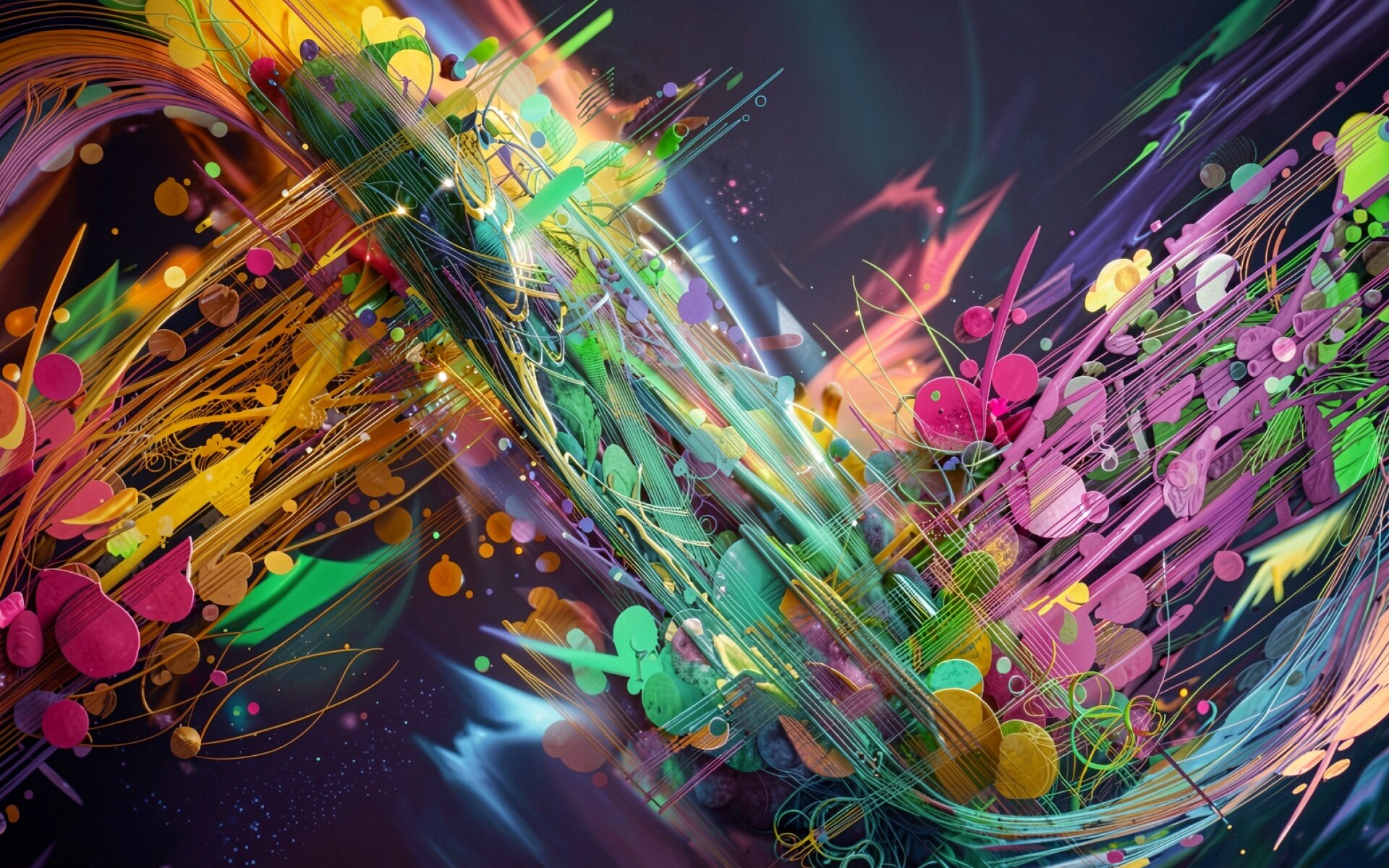 Абстрактный вихрь разноцветных линий и сфер