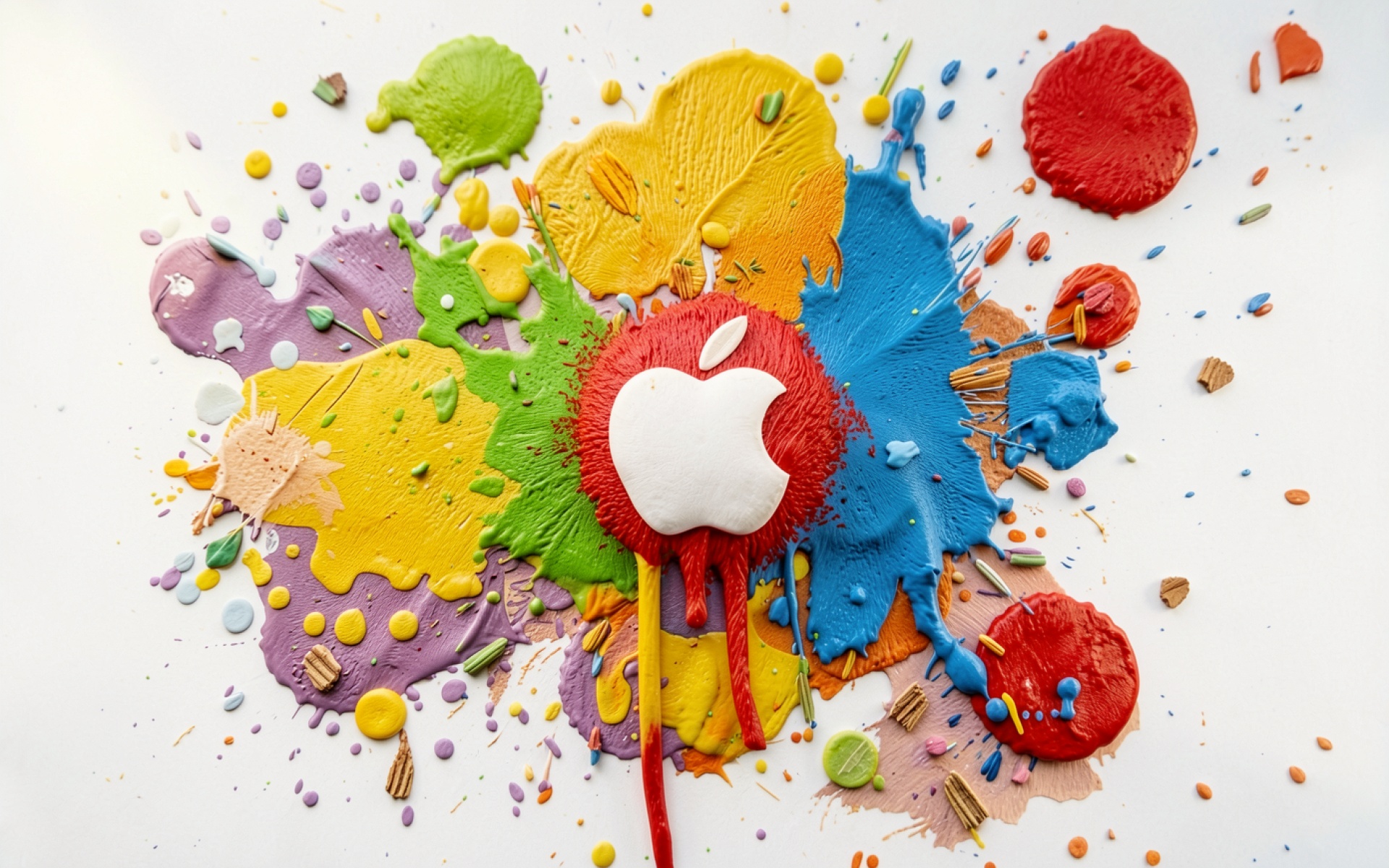 Логотип Apple в разноцветных брызгах краски