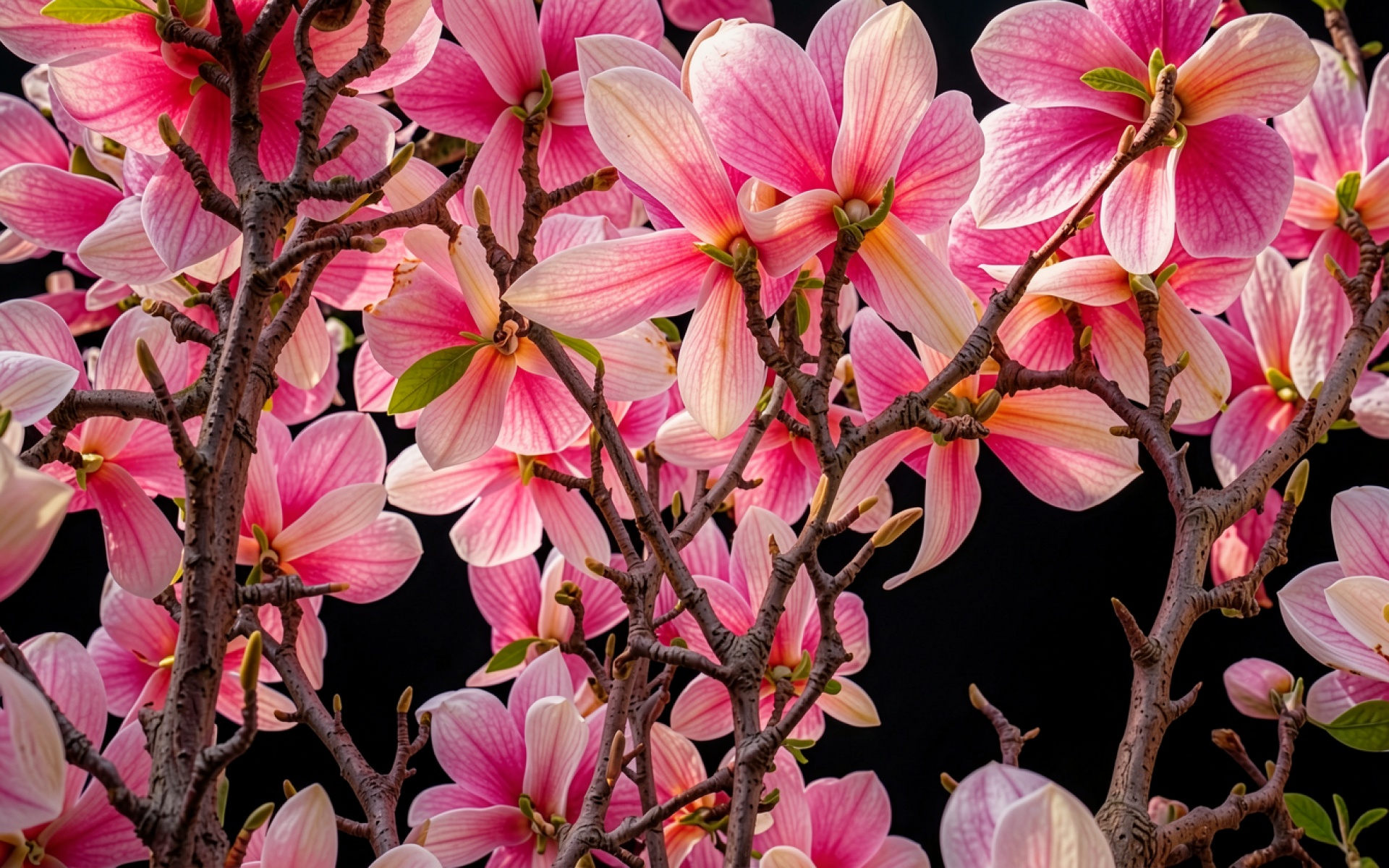 Розовые цветы магнолии на черном фоне