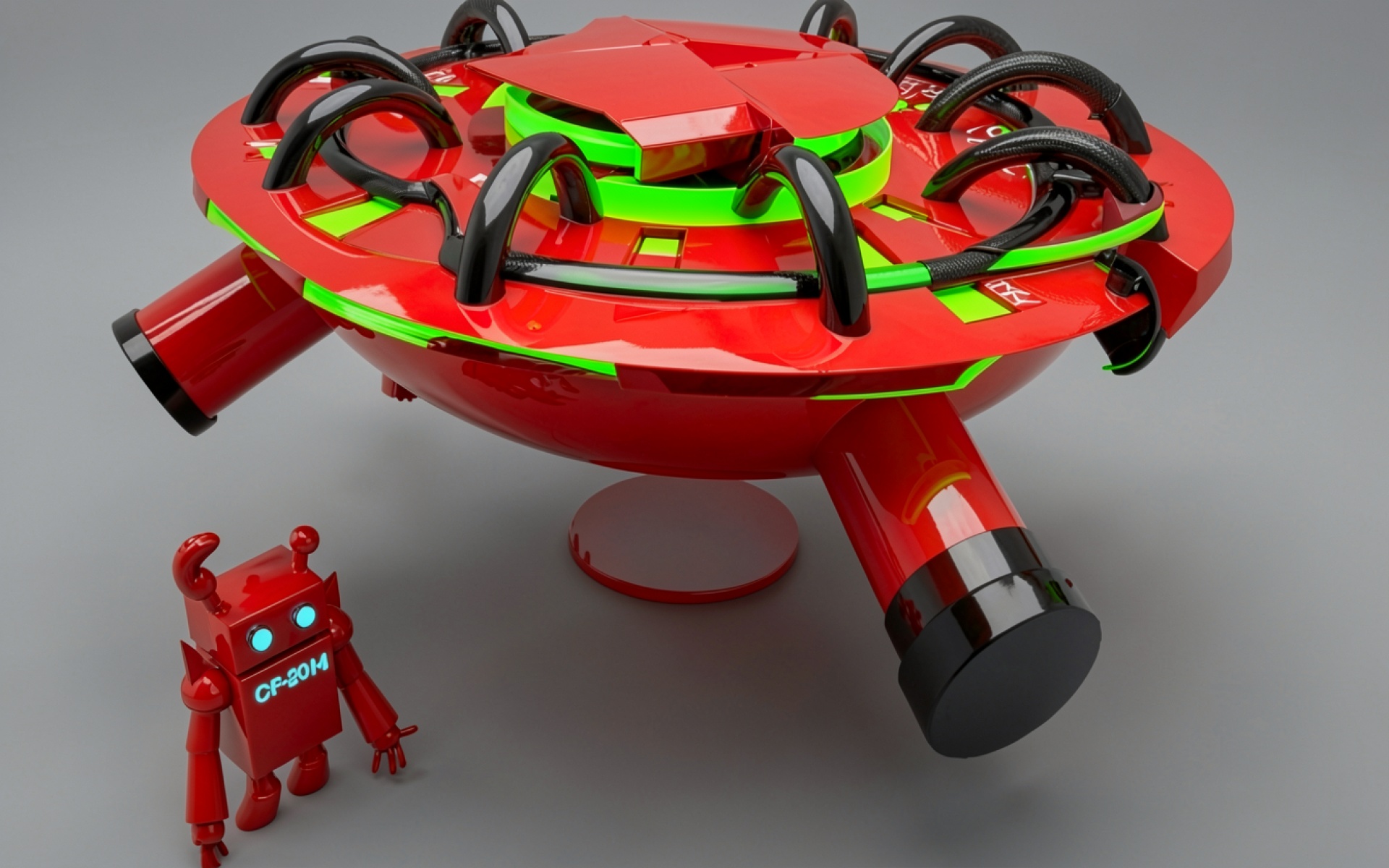 Красный футуристический корабль и маленький робот