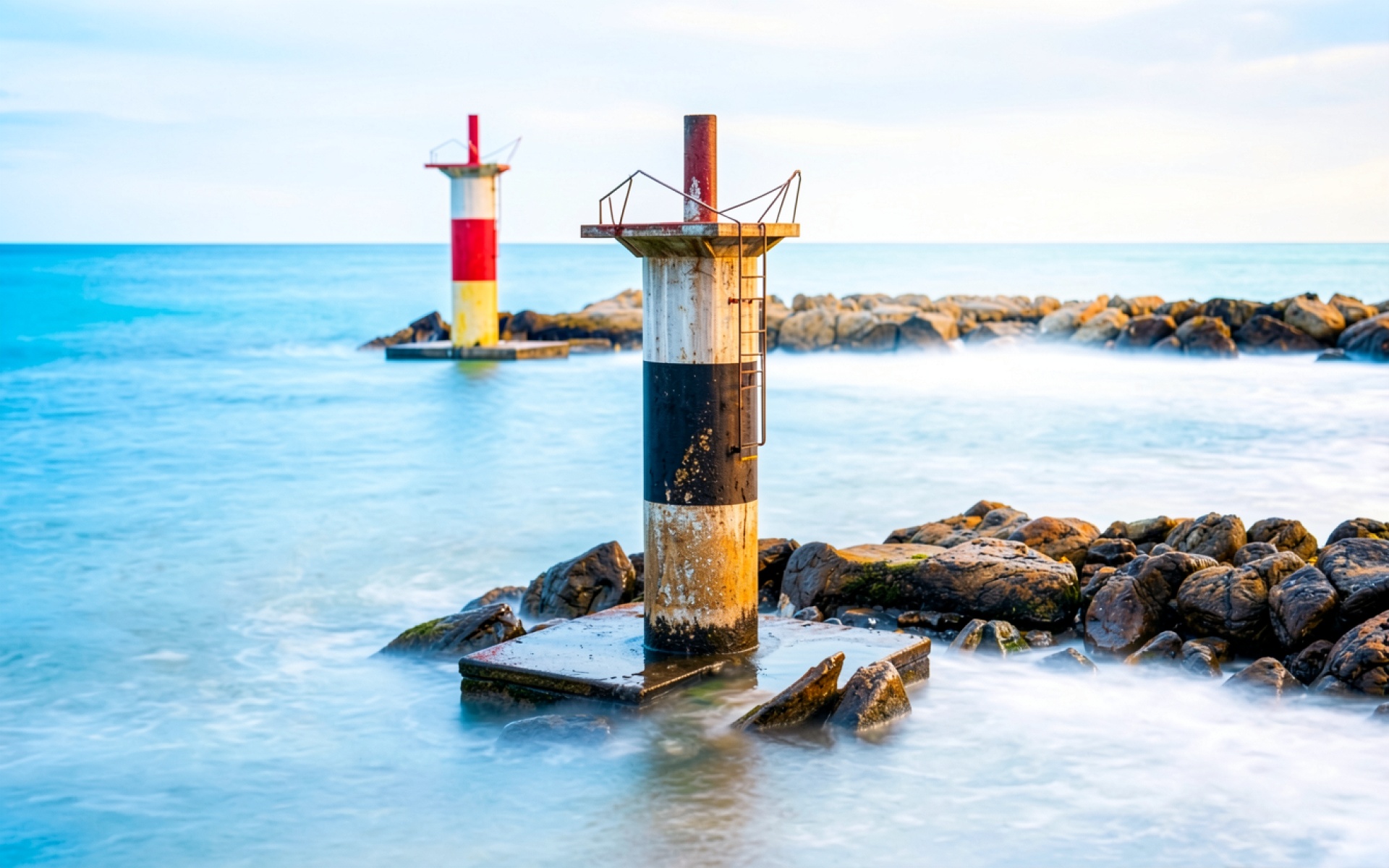Морские маяки на каменистом берегу океана