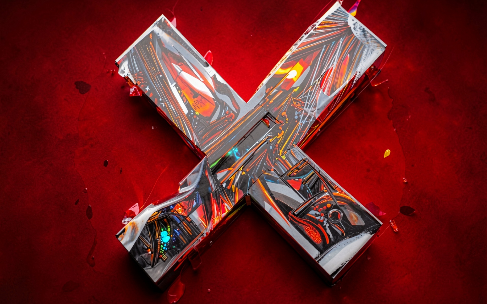Металлическая буква X в красном футуристическом стиле