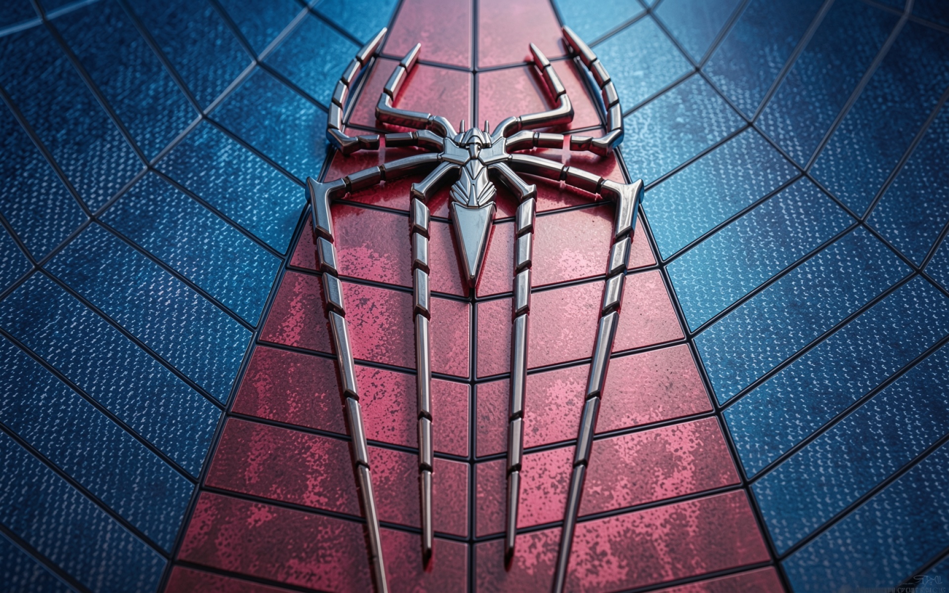 Металлический паук на синем и красном фоне
