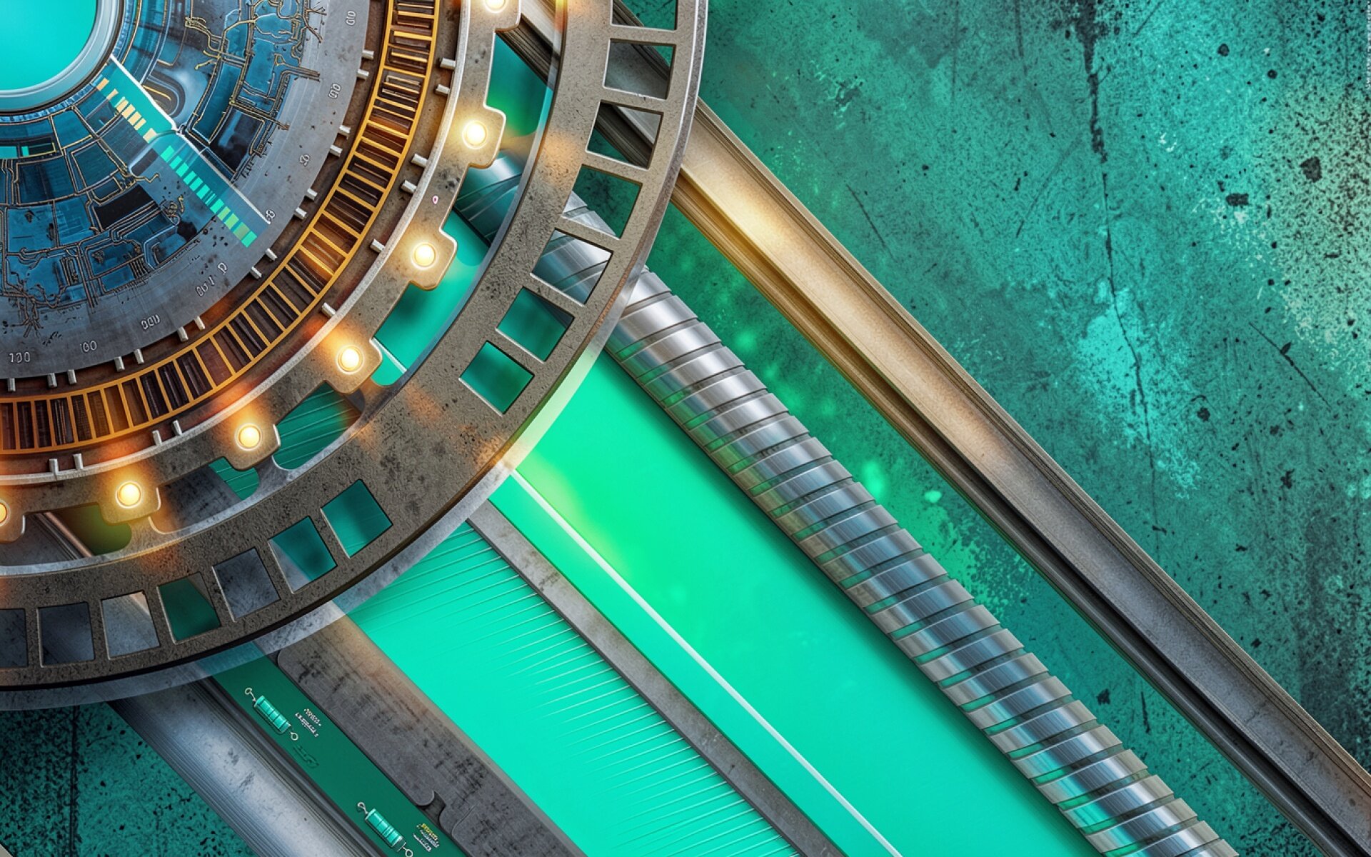 Механизм шестеренок в бирюзовом индустриальном стиле