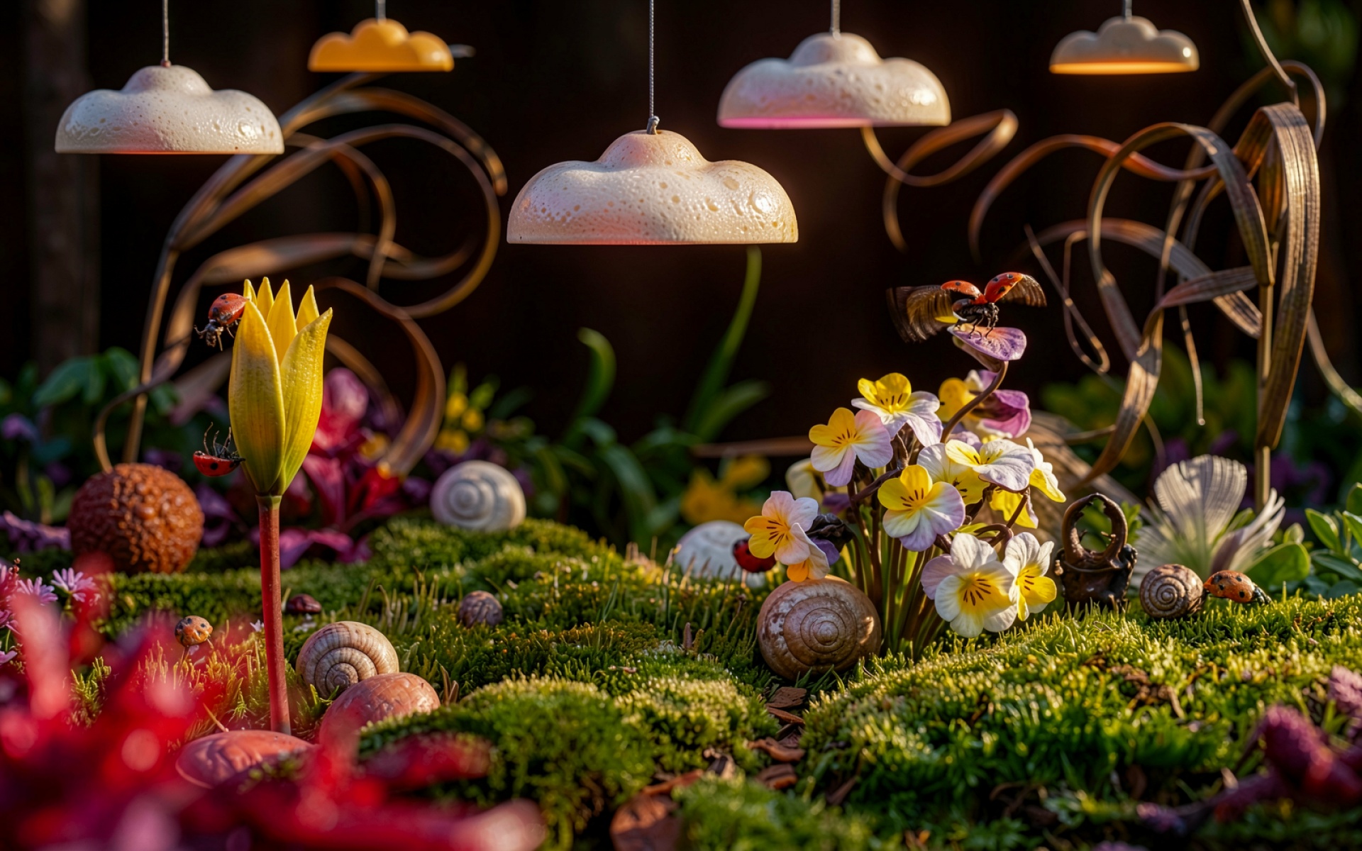 Микромир лесных существ с неоновыми лампами