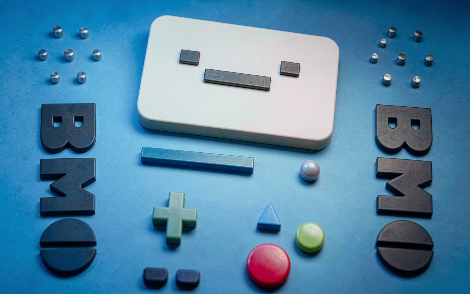 Робот BMO белый минимализм синий фон