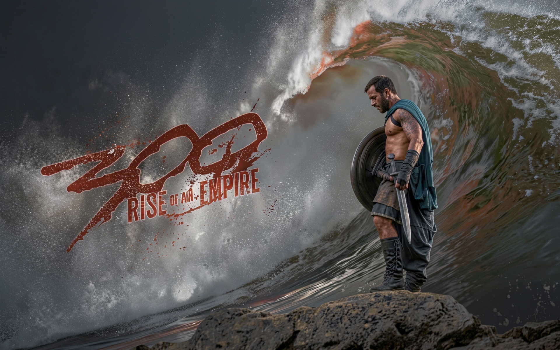 Воин со щитом на фоне морской волны