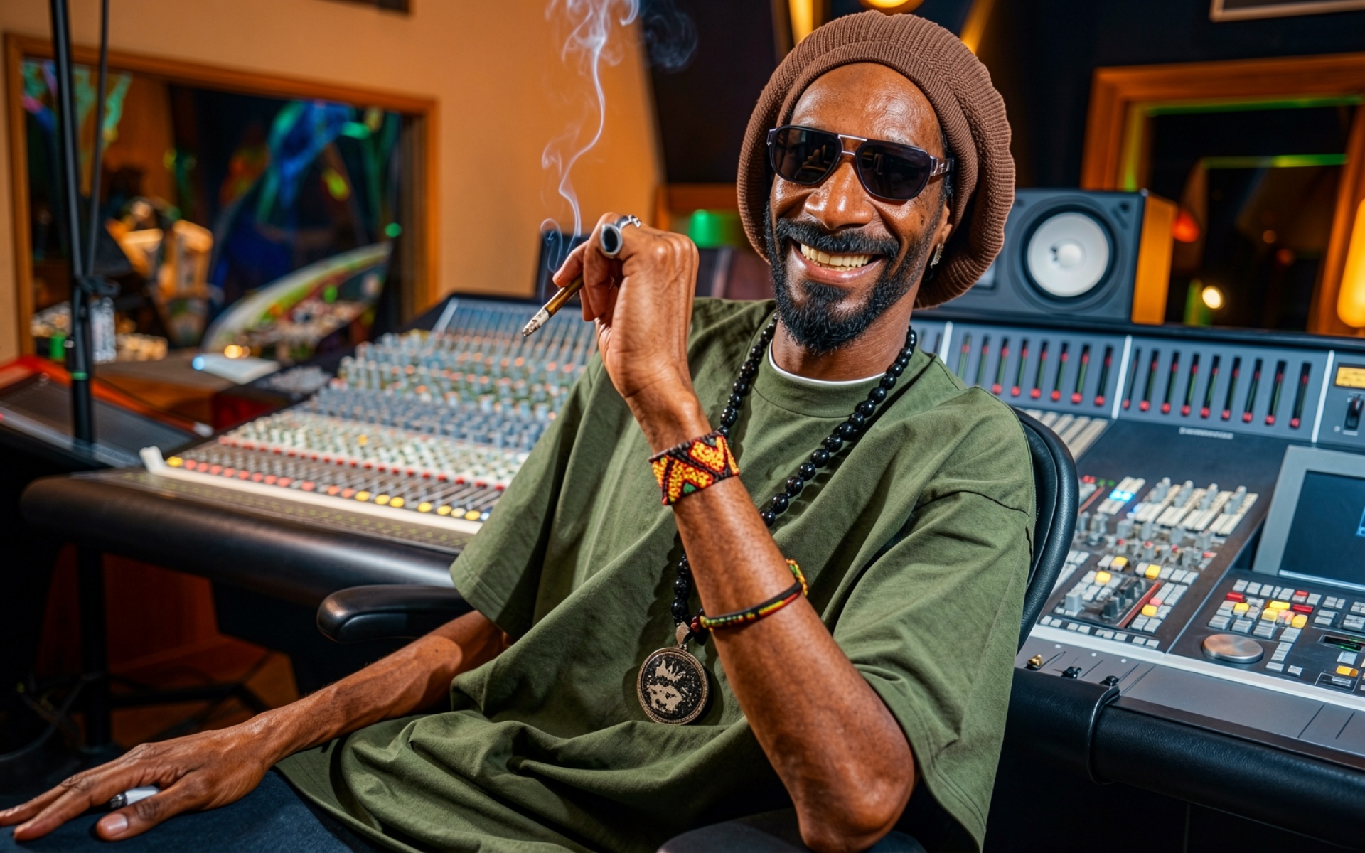 Музыкант в студии звукозаписи в темных очках