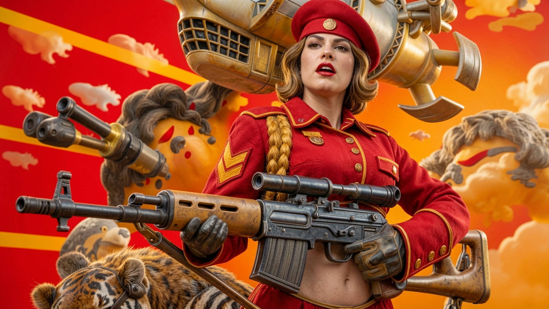 Девушка в красном мундире с винтовкой