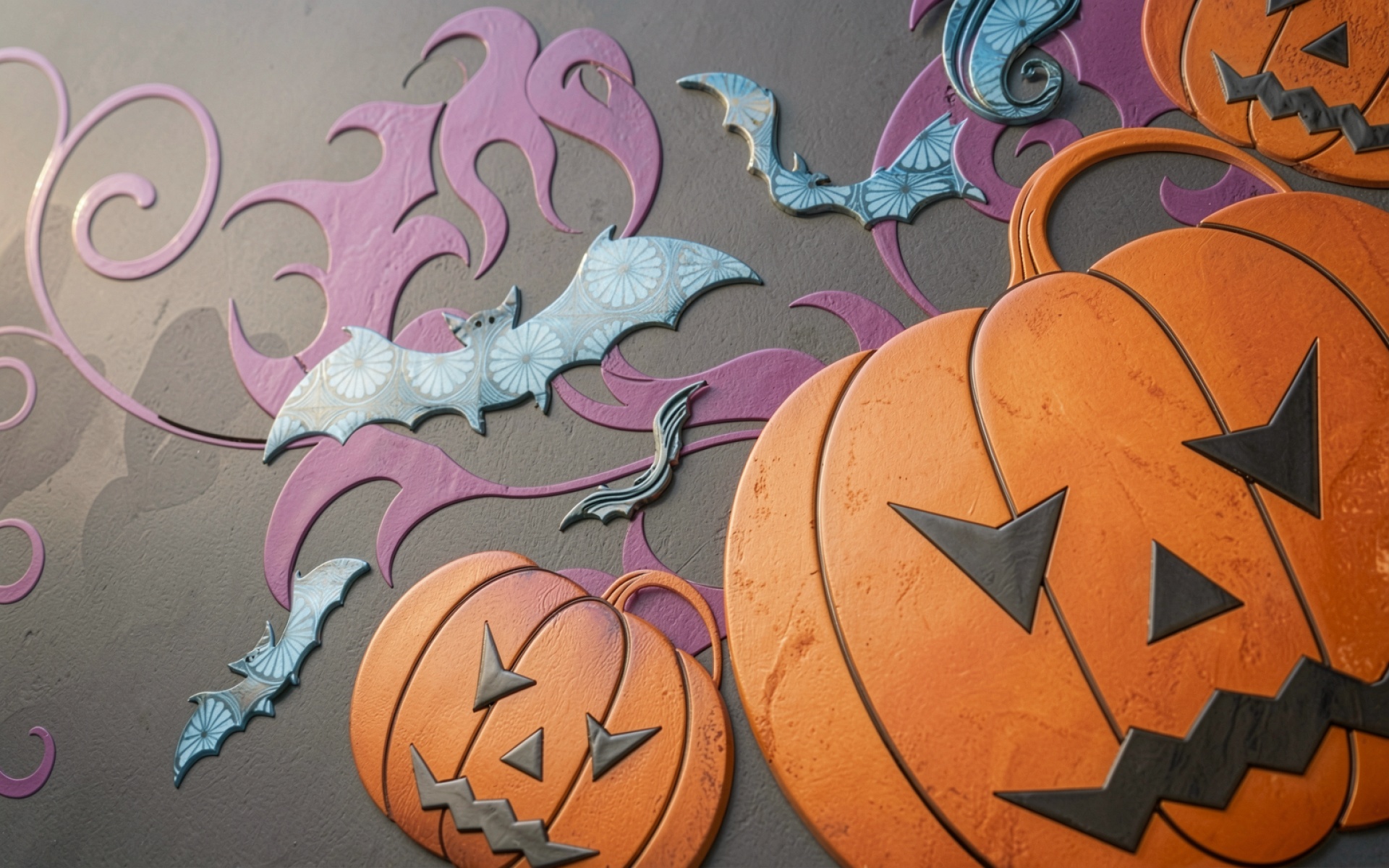 Оранжевые тыквы с летучими мышами в стиле 3D