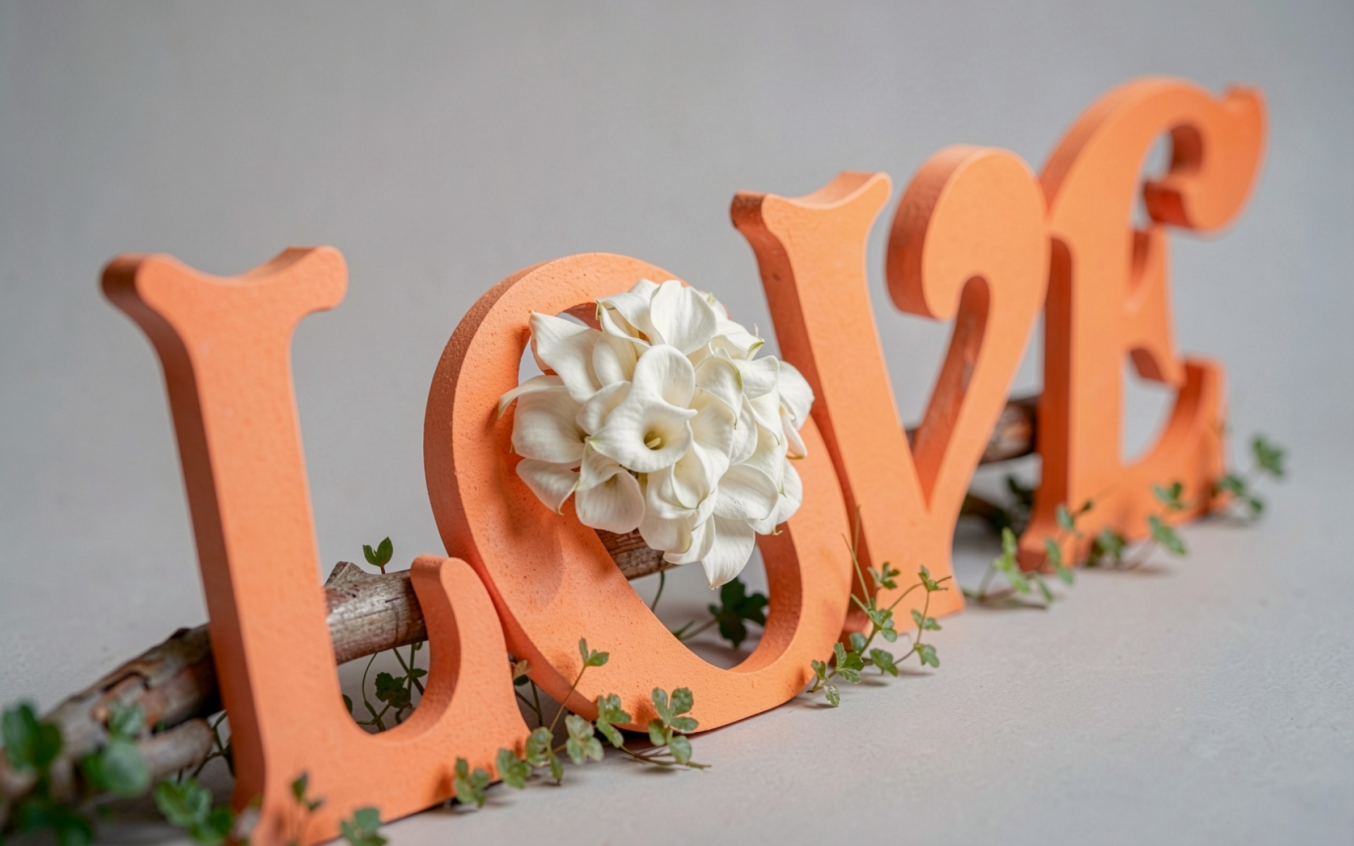 Оранжевая надпись Love с белым цветком