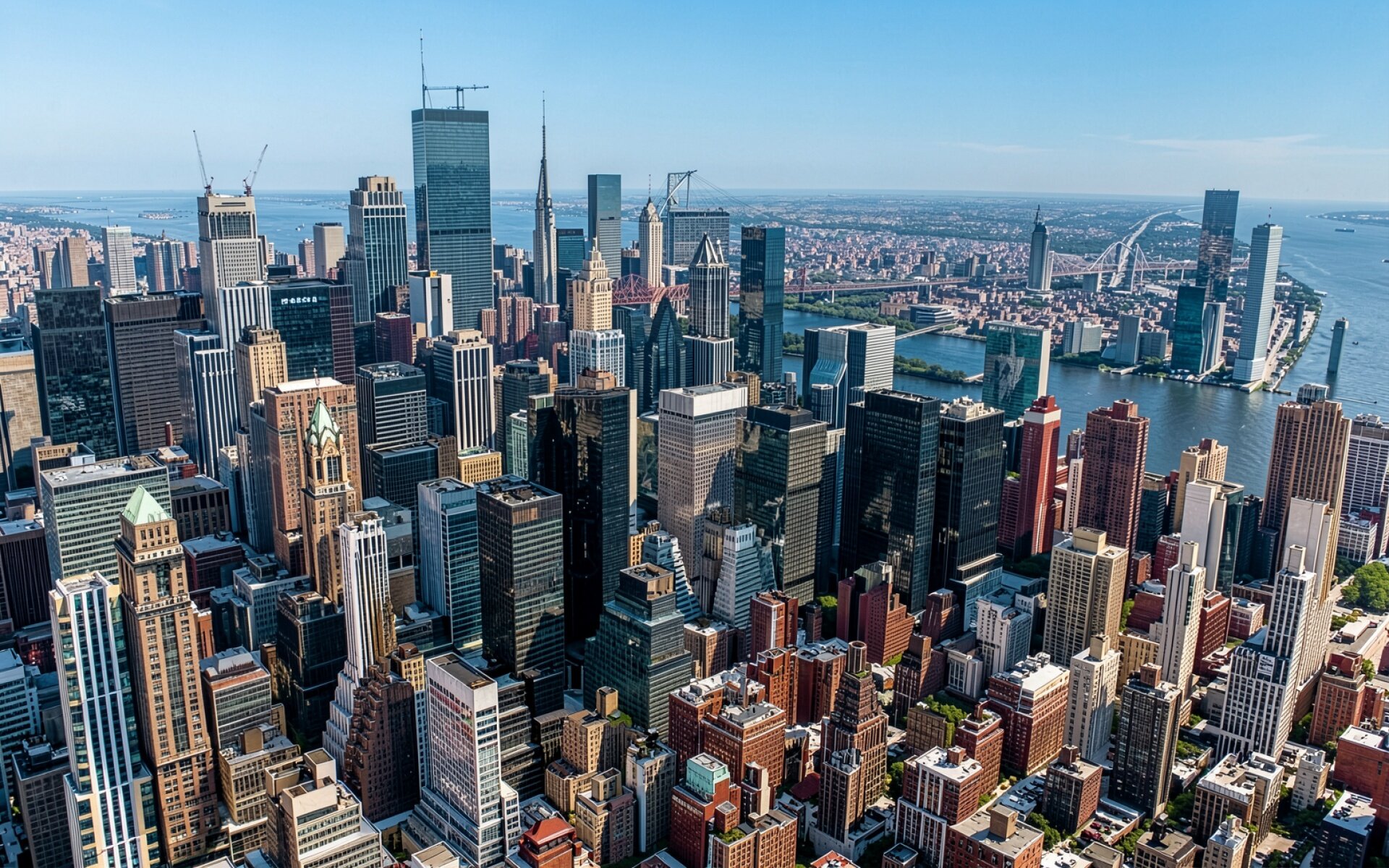 Панорама небоскребов Нью-Йорка в солнечный день