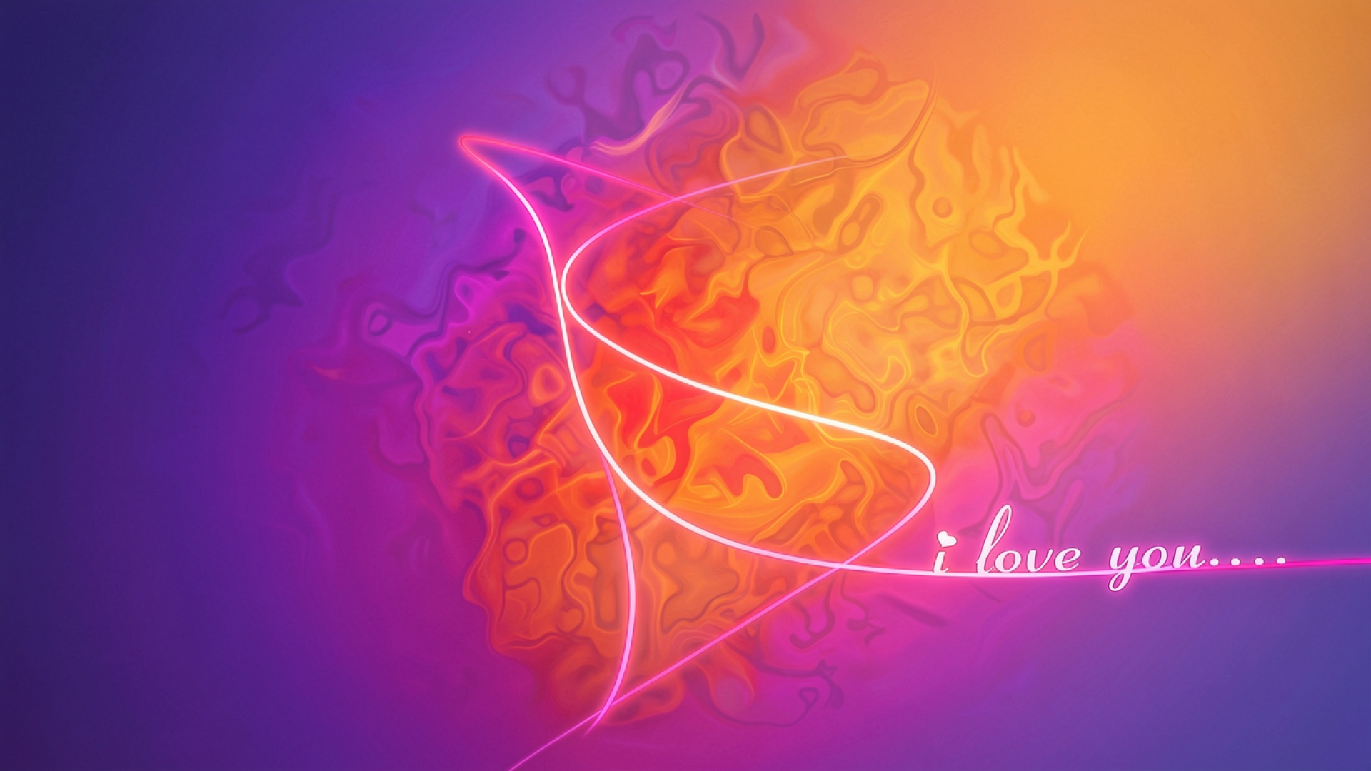 Неоновое сердце в фиолетово-оранжевом абстрактном пространстве