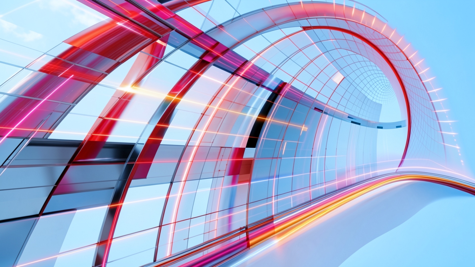 Футуристический тоннель с красными неоновыми линиями