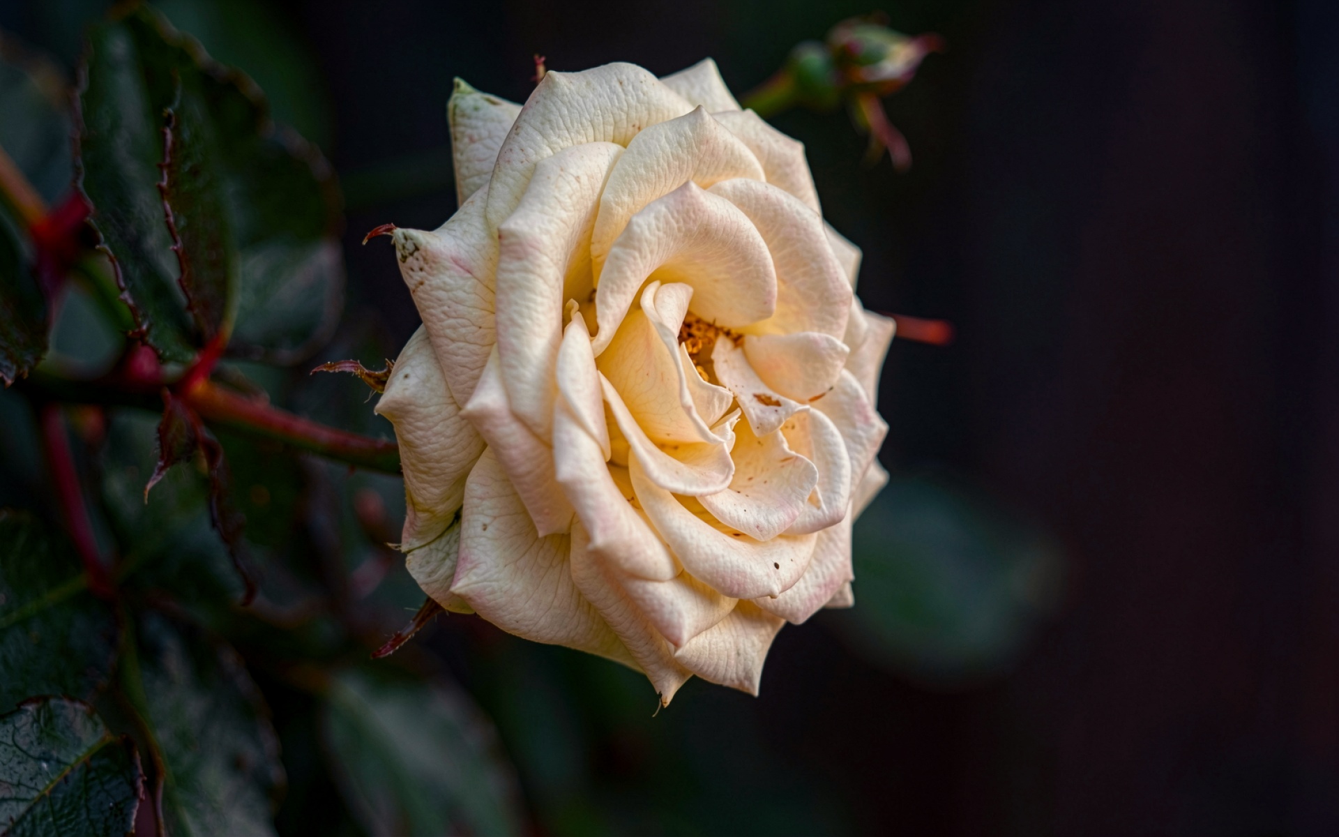 Белая роза в темном саду ночью