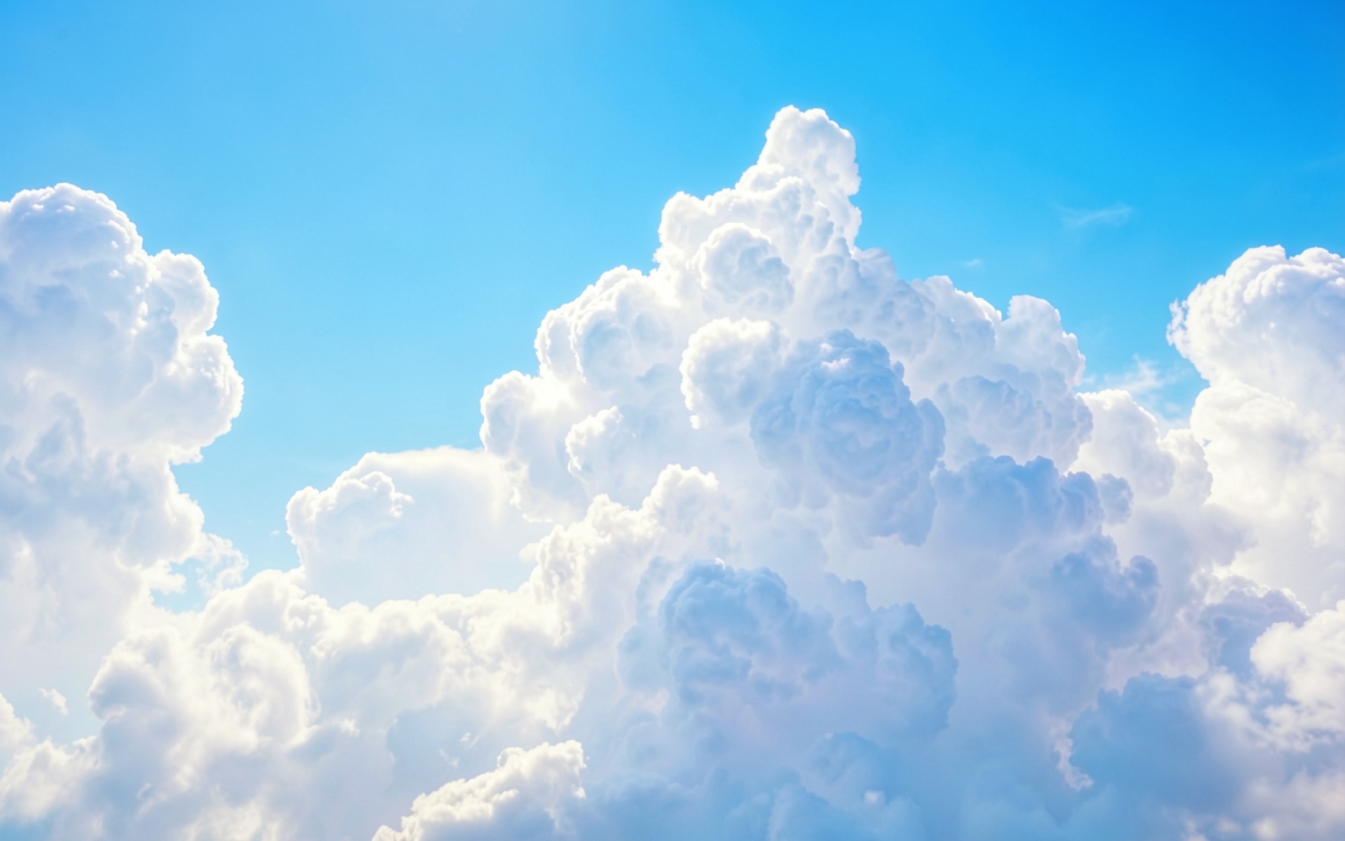 Белые кучевые облака в ярко-голубом небе