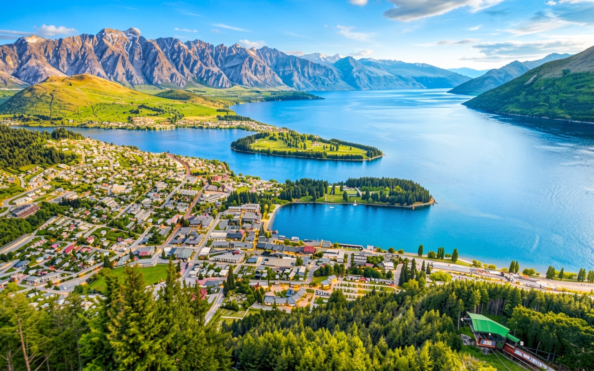 Панорама города Квинстаун синее озеро горы