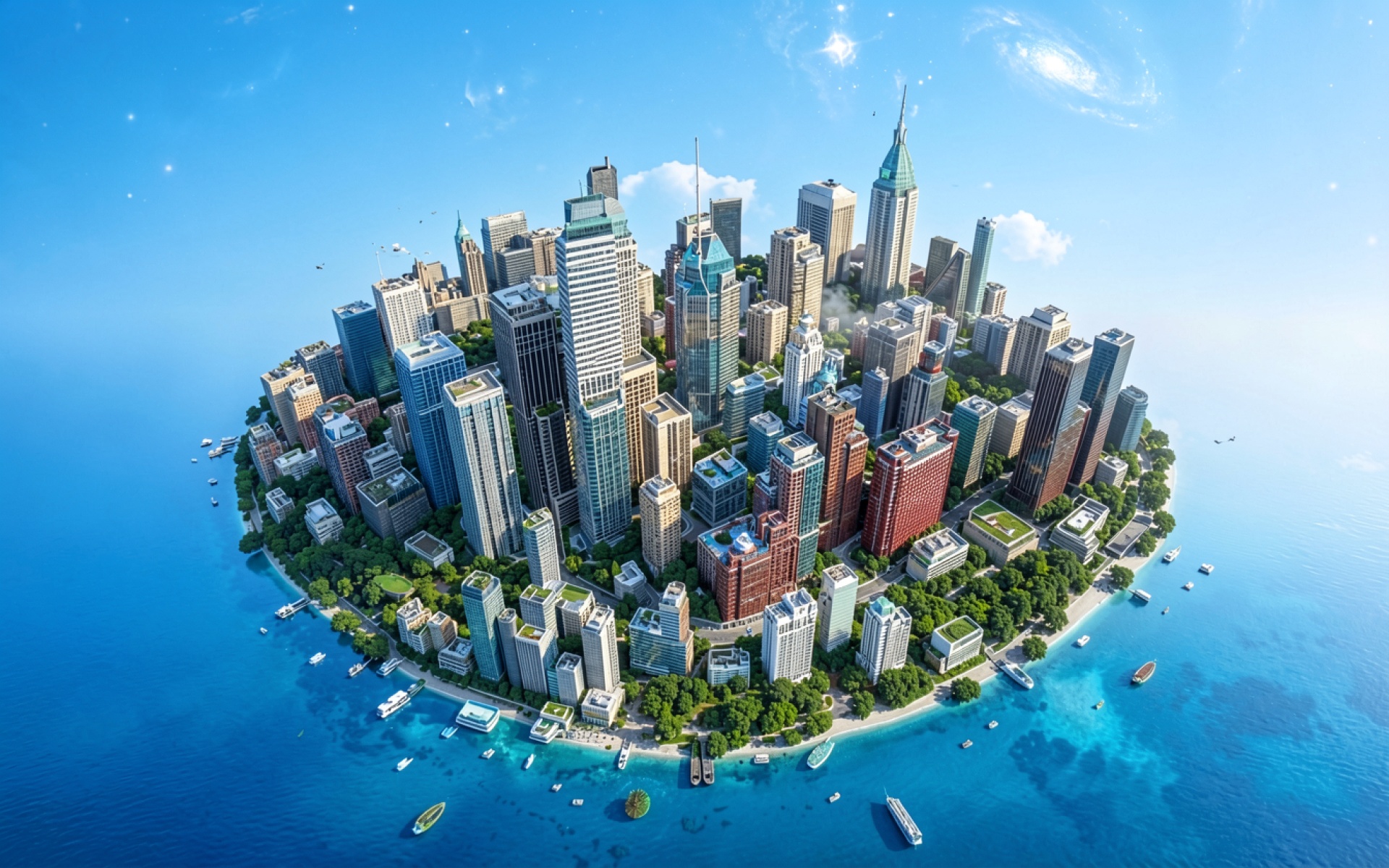 Футуристический город на тропическом острове океана