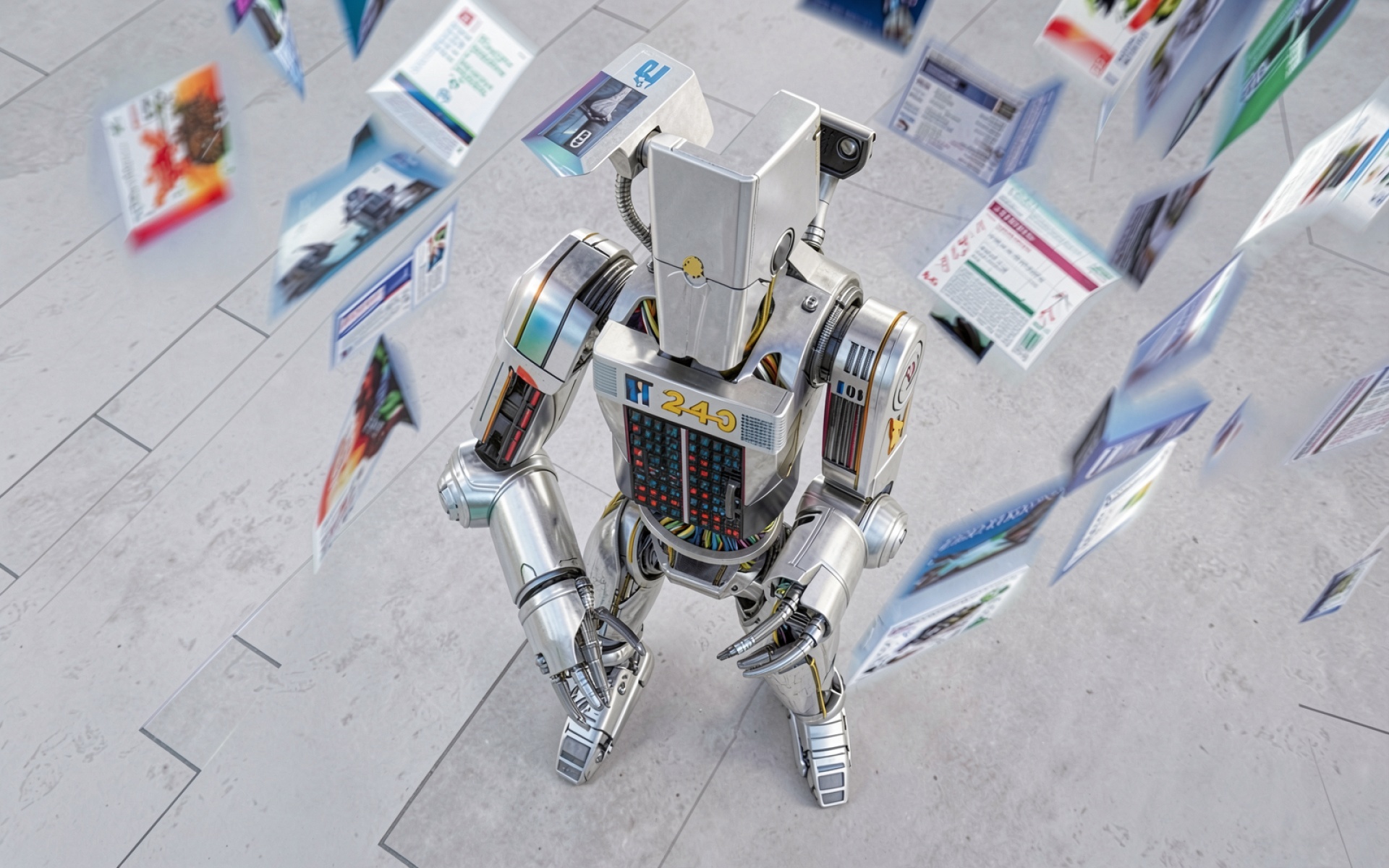 Робот в окружении цифровых интерфейсов